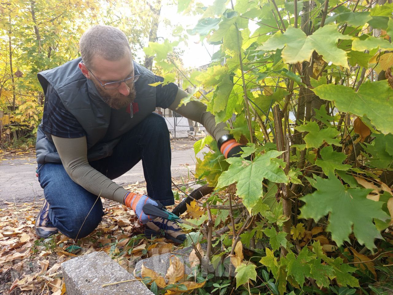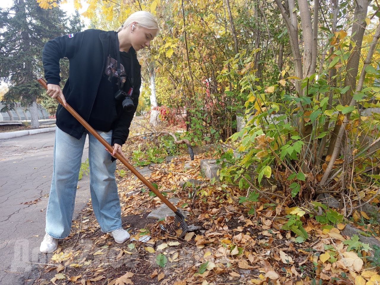 Волонтеры из молодежных движений несколько раз в месяц убирают старые могилы на кладбищах Донецка. В этот раз корреспондент “Донецкого времени” застал их на Мушкетовском кладбище. Девушка и двое парней с граблями, вениками и сучкорезом наводили порядок на могиле со звездой.