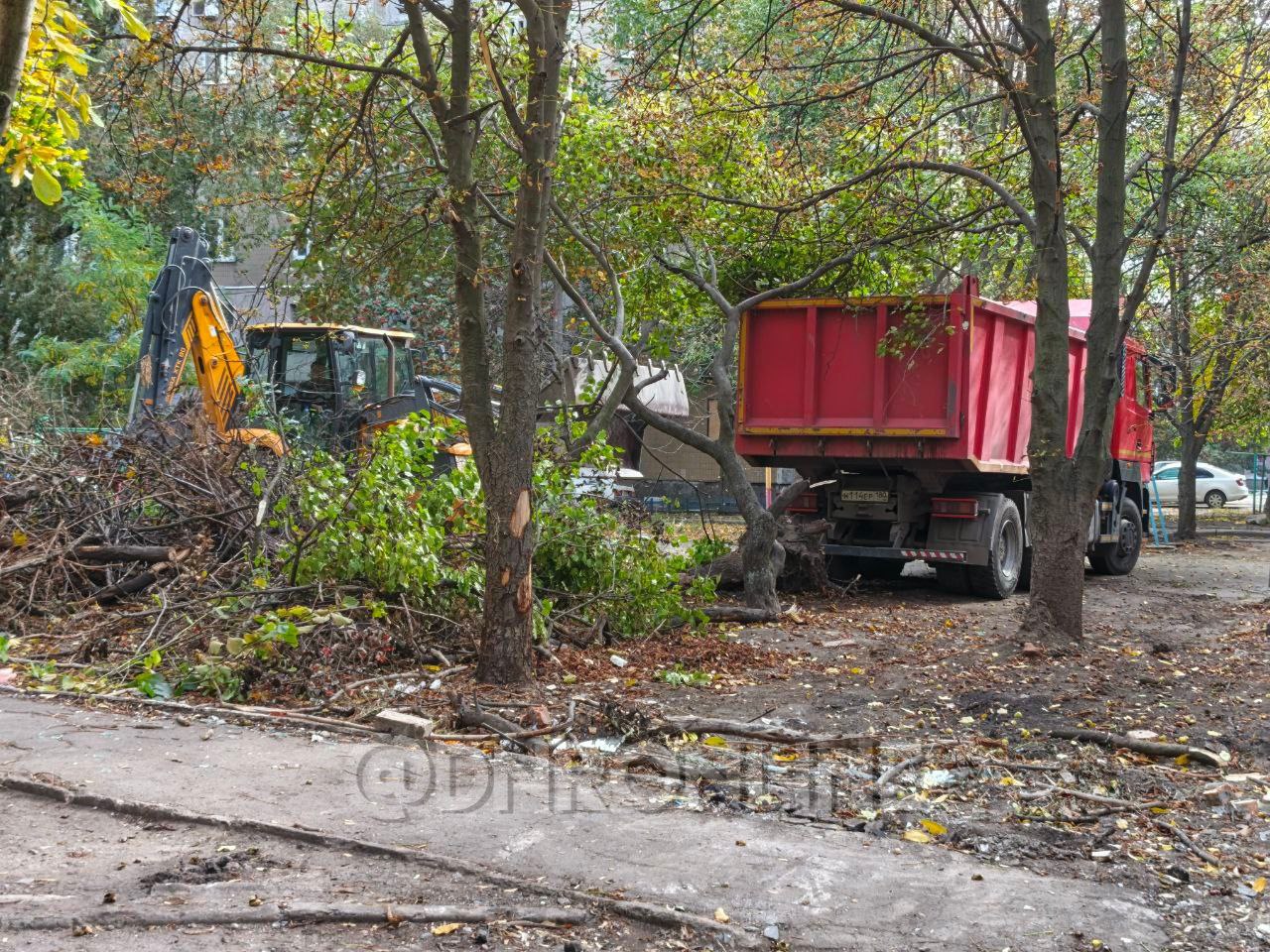 В Киевском районе Донецка, возле ж/д вокзала, продолжается уборка спиленных веток и ликвидация стихийных свалок