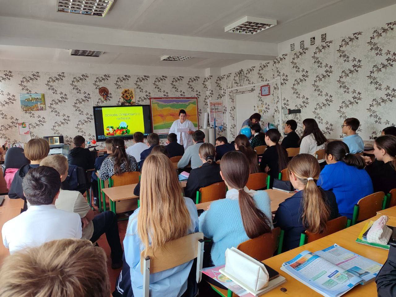 В рамках партийного проекта "Здоровое будущее" медицинские работники провели беседу с учащимися на тему "Здоровое питание школьников".