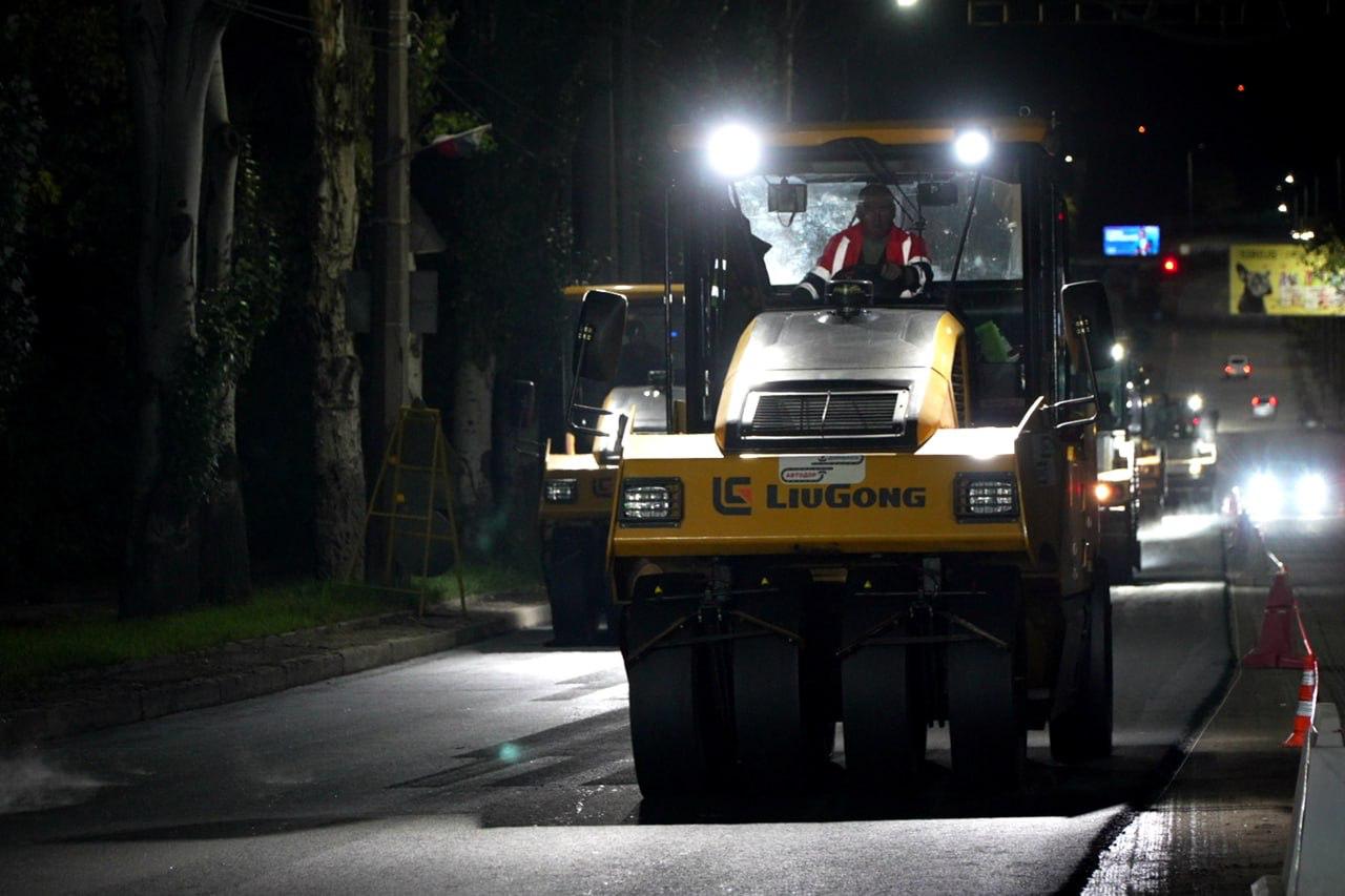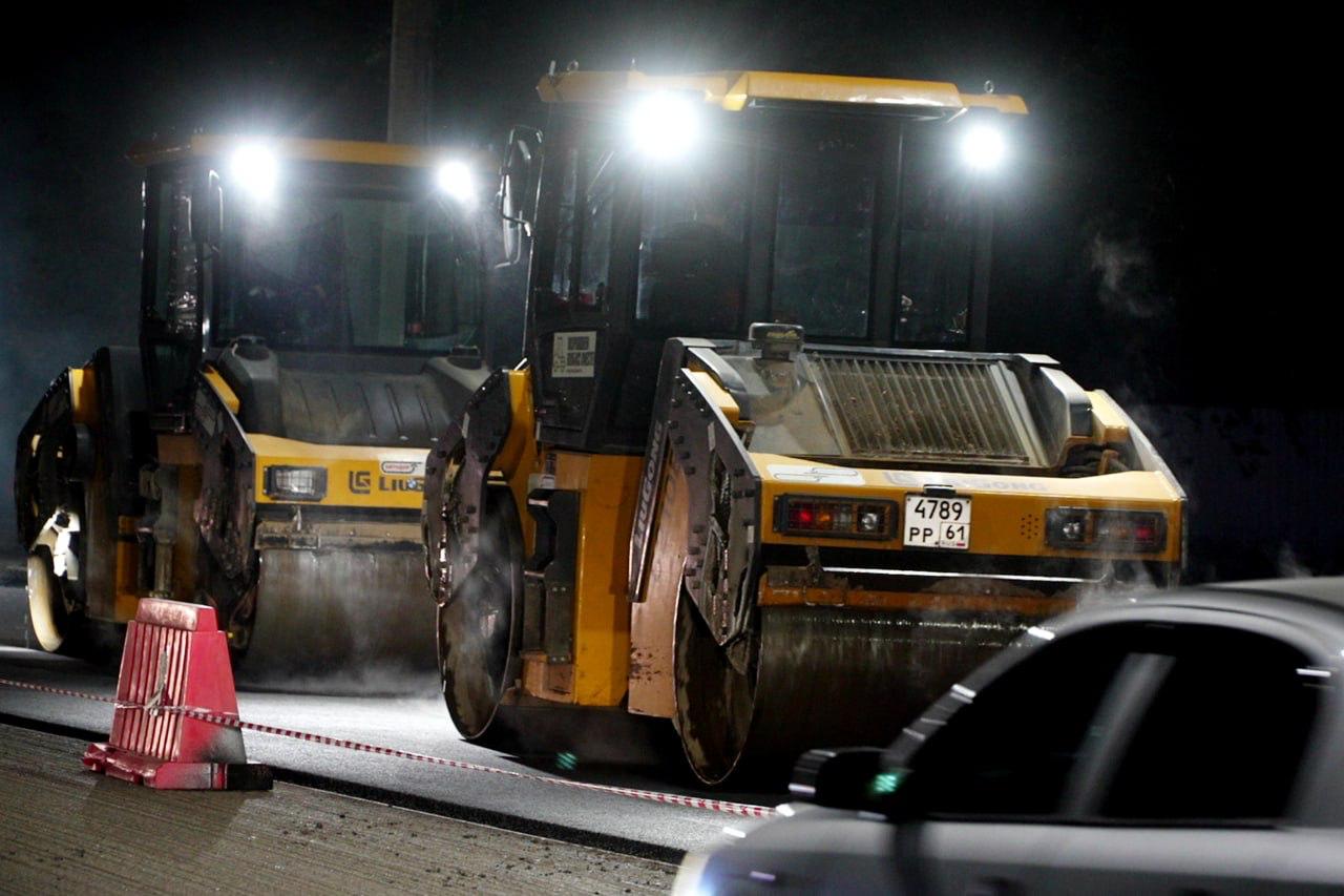 Чтобы не мешать плотному трафику на Ленинском проспекте, основные процессы по укладке асфальта здесь проводятся в ночное время.