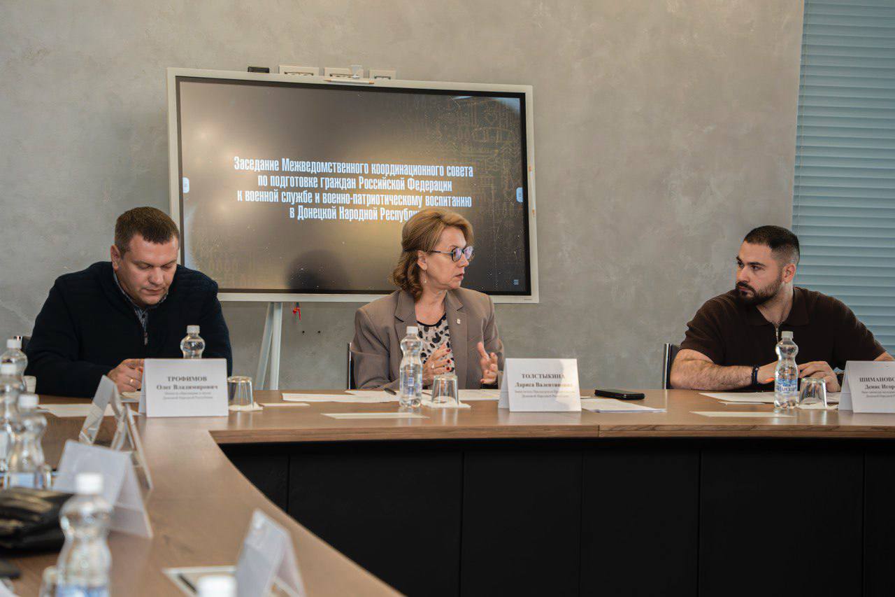 Сегодня состоялось первое заседание Межведомственного координационного совета по подготовке граждан к военной службе и военно-патриотическому воспитанию в ДНР.