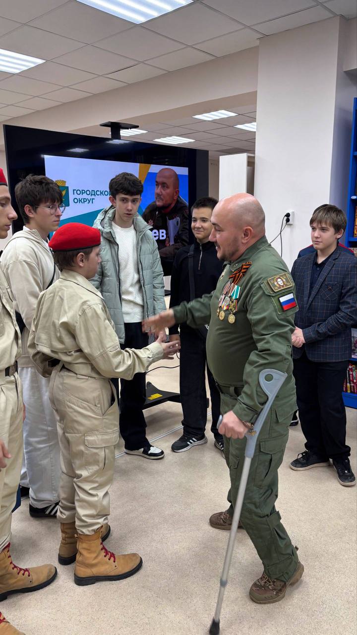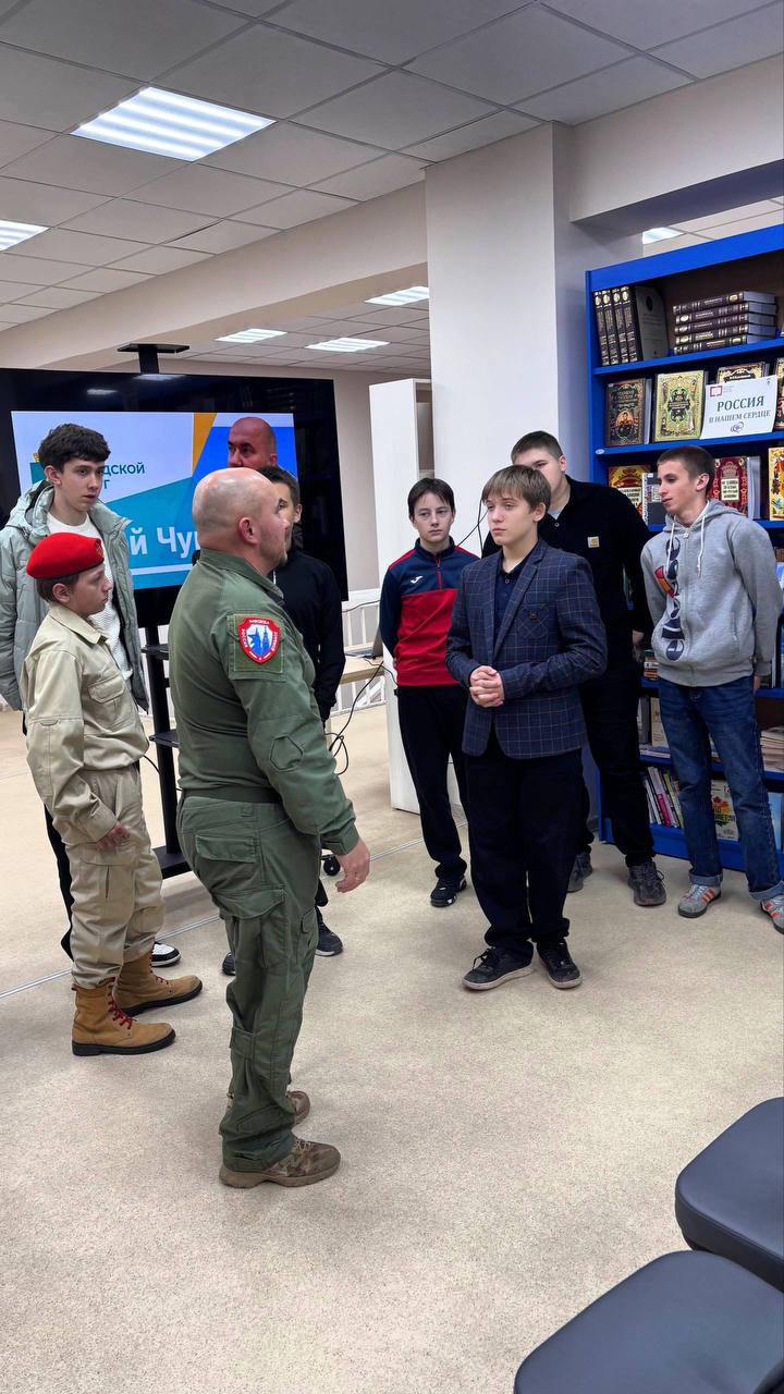 Отдел молодежной политики совместно с Фондом Защитников Отечества провели встречу для обучающихся с участником Специальной Военной Операции Сергеем Чукаевым.