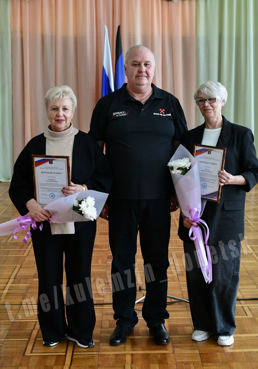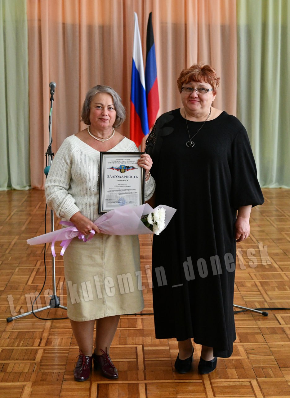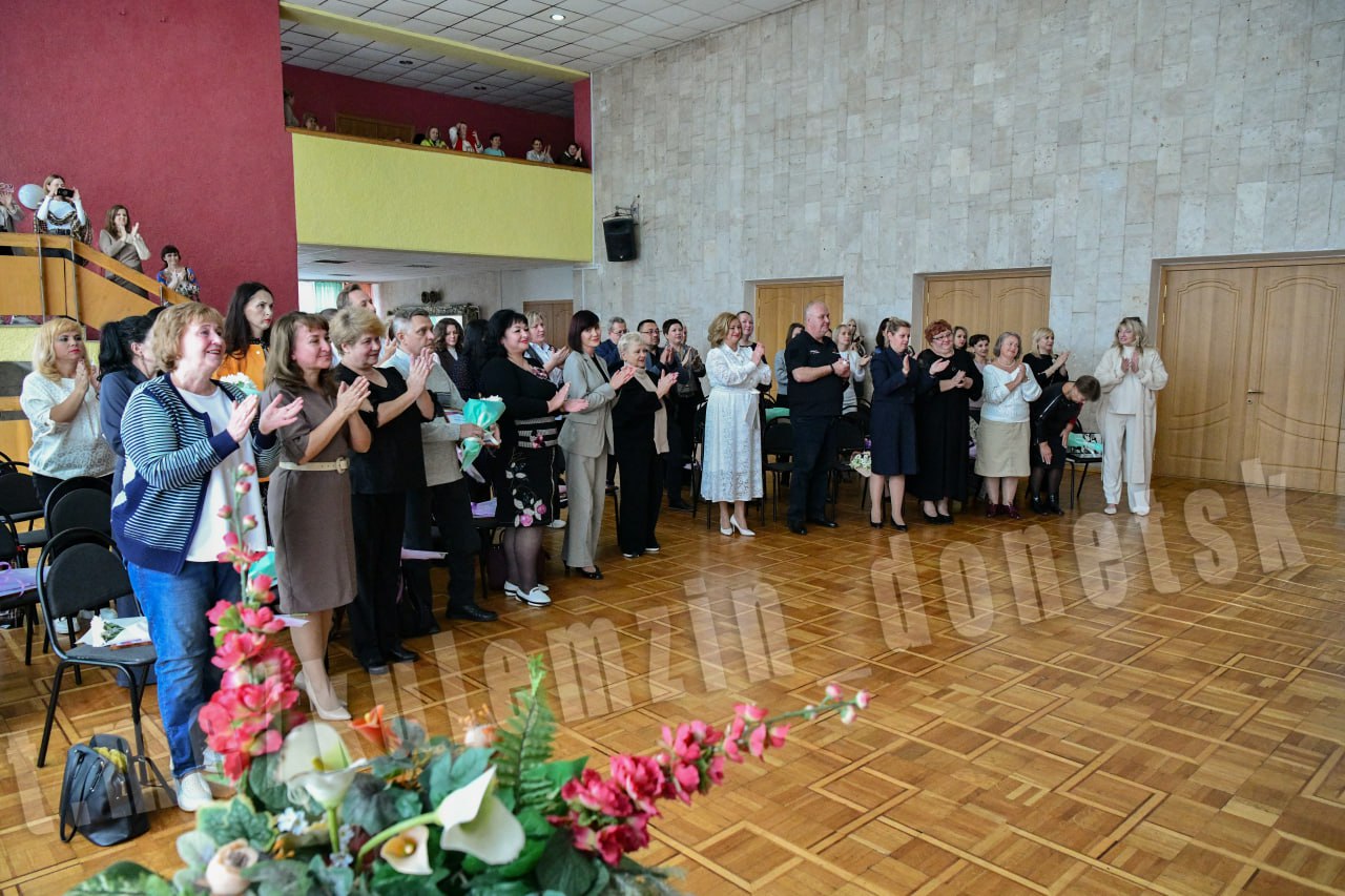 В торжественной обстановке награды вручали заместитель главы администрации Донецка Светлана Везденко и Наталья Илющенко начальник Управления образования администрации г. о. Донецк. Кроме того, педагогам выразил поздравления Василий Олефиров, участник народного ополчения и финалист конкурса «ДОНБАСС. СВОи Герои».