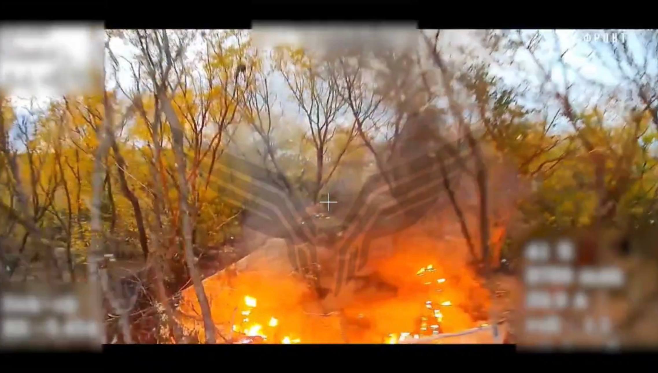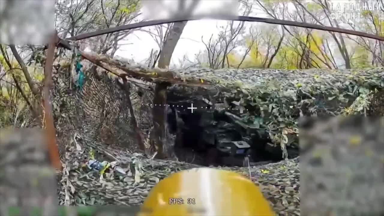 Уничтожение FPV-дронами центра «Рубикон» 155-мм колёсной САУ CAESAR ВСУ в районе посёлка Гришино на Покровскомнаправлении.