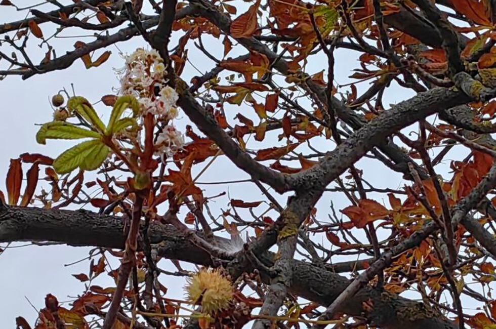 Засуха же заставляет каштаны включить защитный механизм. Повторное цветение в этом случае — экстренная мера, попытка дать потомство в неблагоприятных условиях.