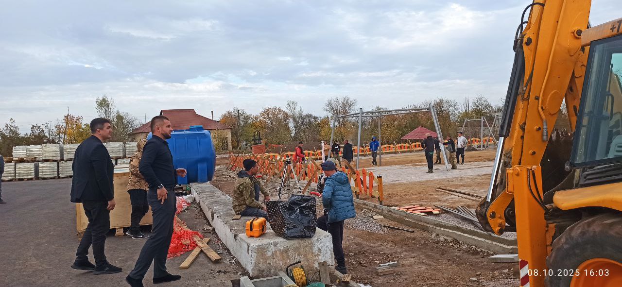 Председатель Тельмановского муниципального совета Дмитрий Липчанский совместно с представителем общественного совета муниципального образования посетили объект благоустройства в селе Гранитное, который реализуется в рамках программы формирования современной городской среды.