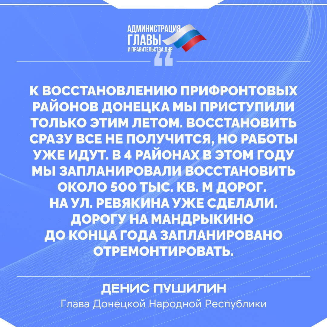 Глава ДНР о восстановлении дорог в прифронтовых районах Донецка и планах по дальнейшему ремонту дорожного покрытия в регионе.