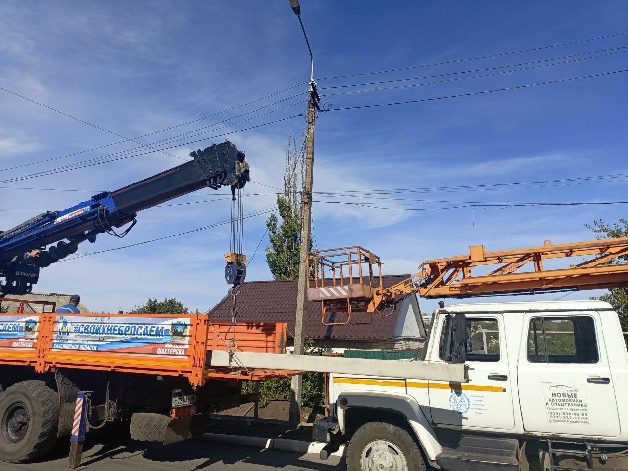Электротехники региона-шефа в составе бригады Шахтерского РЭС оперативно демонтировали аварийную опору ЛЭП на ул. Ивана Франко в Кировском.