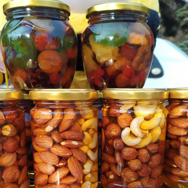 Ассортимент был весьма разнообразным и включал свежие фрукты и овощи, колбасные изделия, сыр, рыбу, мед, яйца и другое.