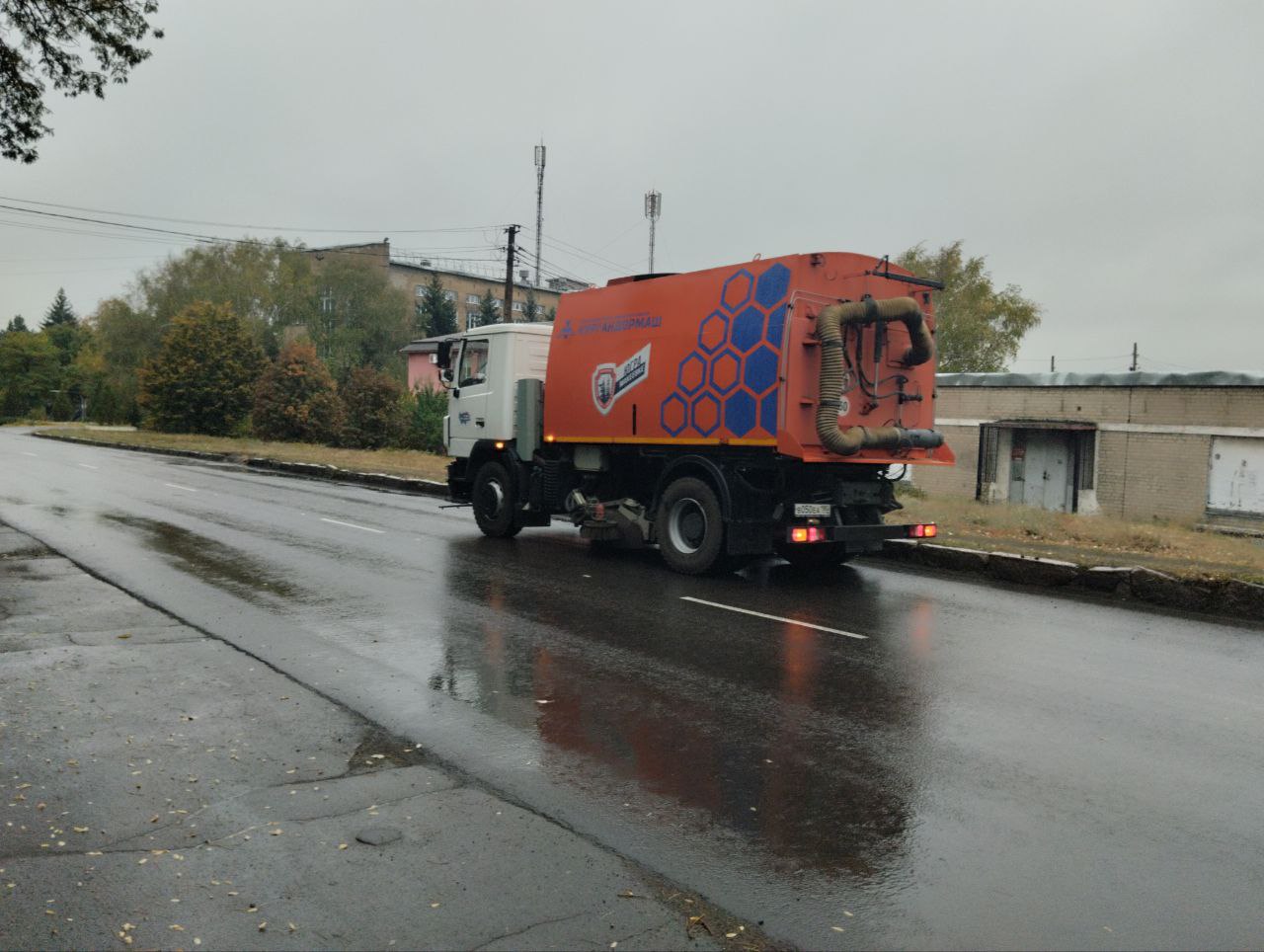 9 октября, с целью приведения территории в надлежащее санитарное состояние силами МУП АГМ «Перспектива» проведены работы по механизированной уборке проезжей части автодороги по ул. Кирова