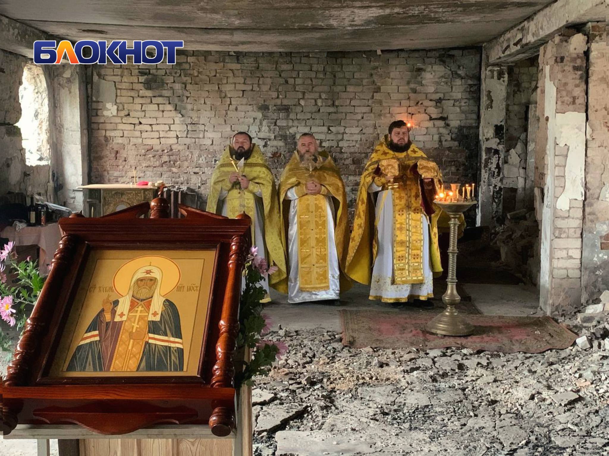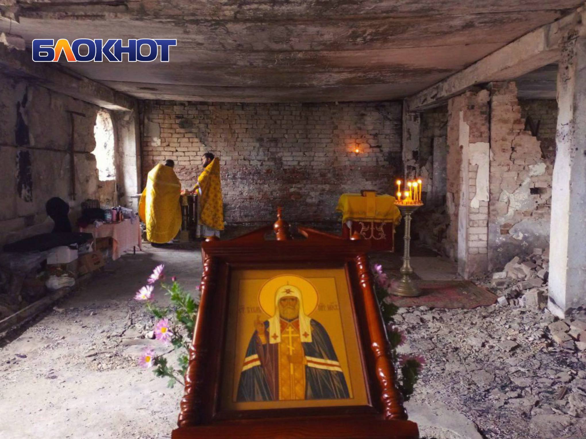В разрушенном войной храме в честь святителя Тихона в Угледаре встретили престольный праздник