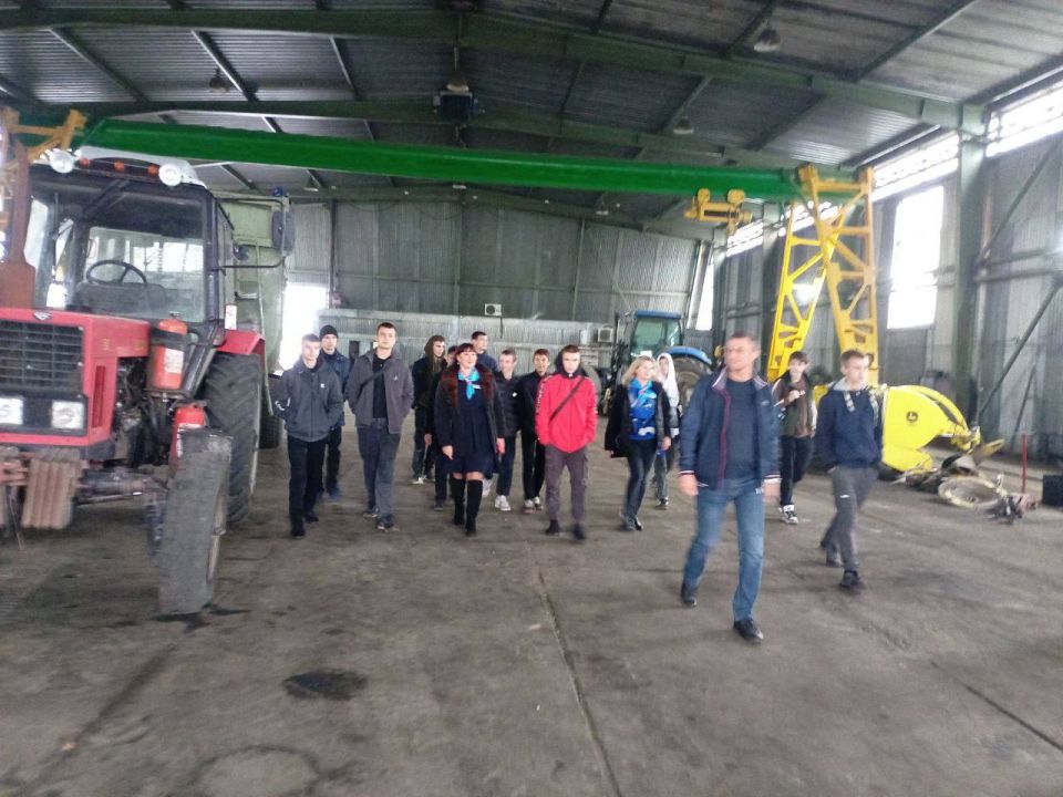 Главный инженер филиала Владимир Калус рассказал о перспективных направлениях развития компании и существующих вакансиях. На территории тракторного парка студенты ознакомились с техникой и оборудованием сельского хозяйства, посетили ремонтные мастерские и ангары предприятия, пообщались с работниками предприятия.