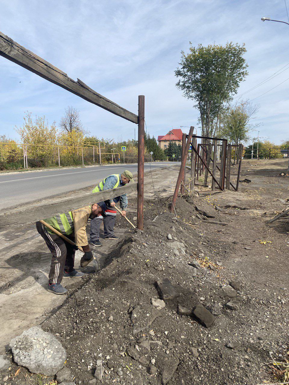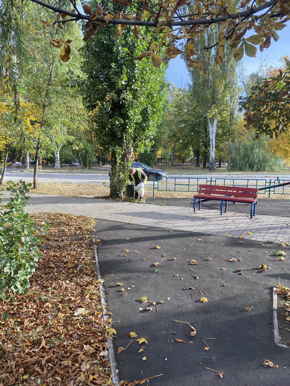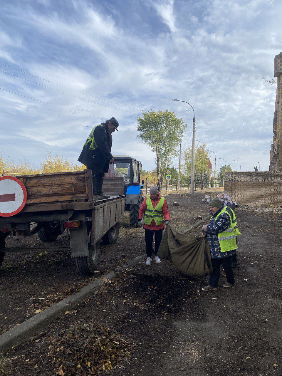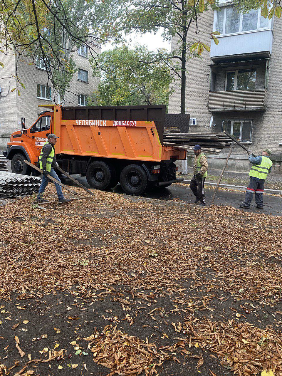 Уборка мокрой листвы и веток, очистка подъездного кармана, погрузка аварийного заграждения с территории автовокзала в г. Ясиноватая