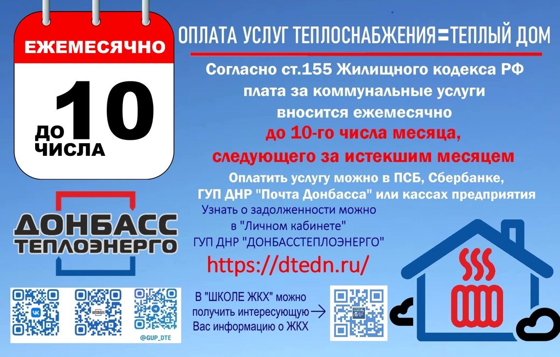 "Донбасстеплоэнерго" информирует население: