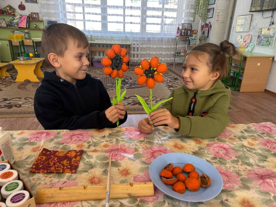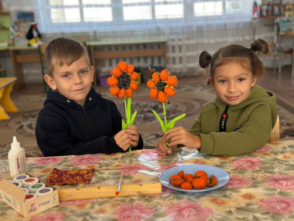В Государственном казенном дошкольном образовательном учреждении "Детский сад № 119 общеразвивающего вида городского округа Макеевка" Донецкой Народной Республики Первичного отделения №541, в подготовительной группе состоялся урок-творчество по работе с природным материалом Подсолнух. Подсолнух считается символом счастья, добра и гармонии. Его большие жёлтые лепестки напоминают солнце, дарящее тепло всему живому.