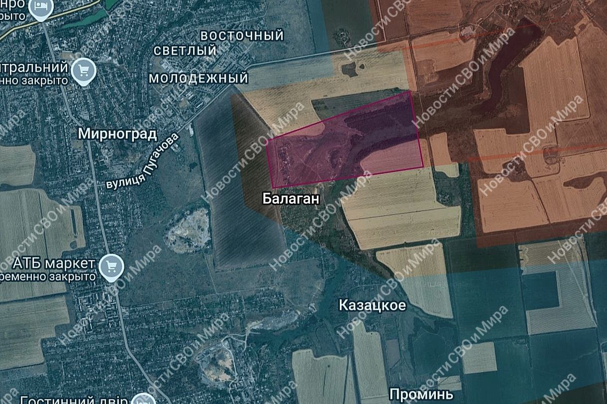 Населенный пункт Балаган. Наши воины продвинулись и заняли позиции в его северной части, а это уже практически окраины Димитрова (Мирнограда), сообщают Новости СВО и Мира