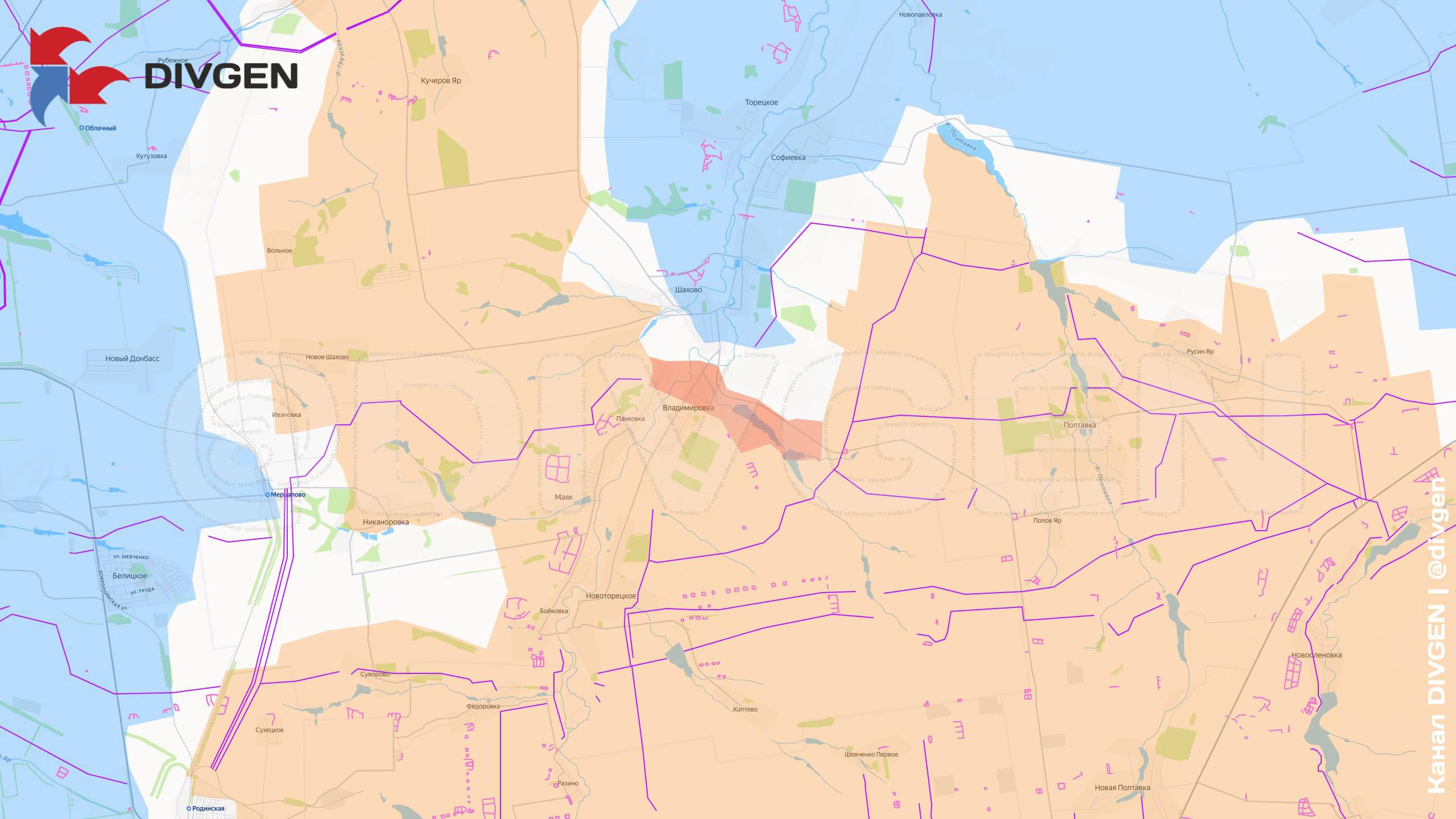 Очевидно, что в бой пошел накопленный резерв, целью которого являлось расширение имеющейся зоны прорыва, упрощение его логистики и снижение угрозы отрезания "кишки" со стороны ВСУ, так как через Владимровку и следующее за ним Шахово проходит очень важная дорога, ведущая в сторону Кучерова Яра и Нового Шахово.