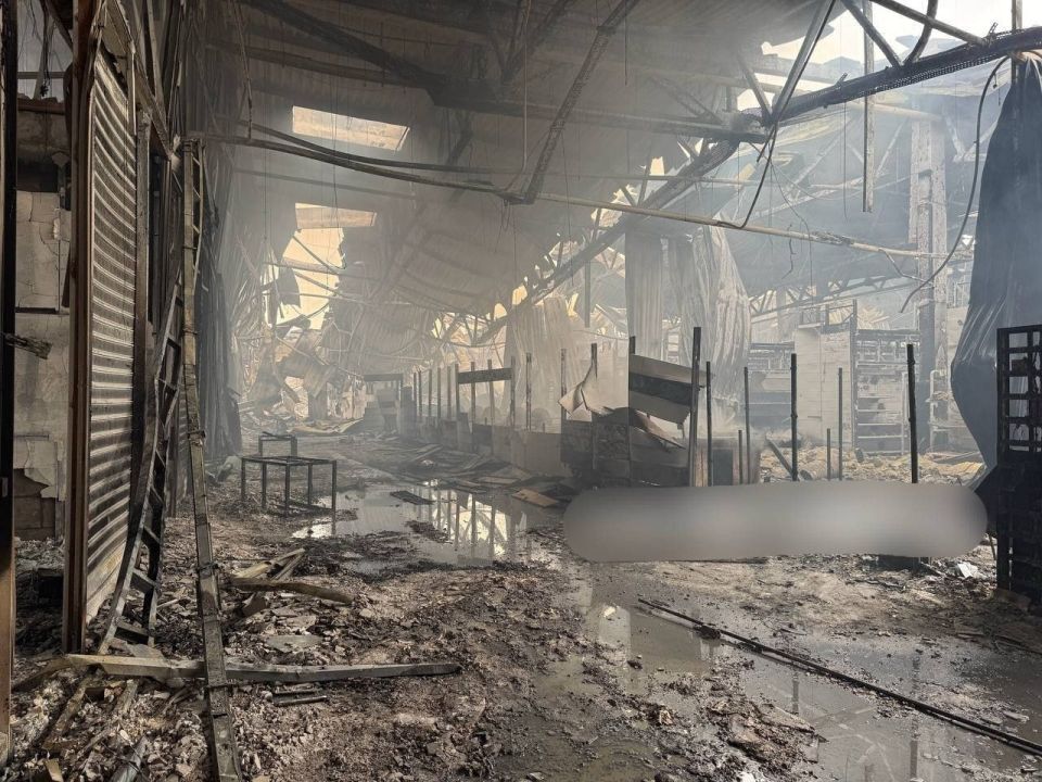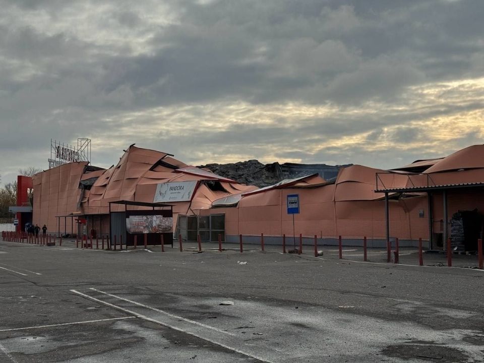 В Донецке в результате массовой ночной атаки беспилотников украинских нацистов полностью сгорел гипермаркет "Сигма" - гражданский объект, очень важный для инфраструктуры Донецка.