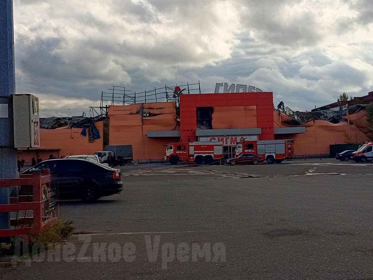 Любопытство пересилило безопасность: к сгоревшему гипермаркету "Сигма-Ленд" потянулись толпы зевак