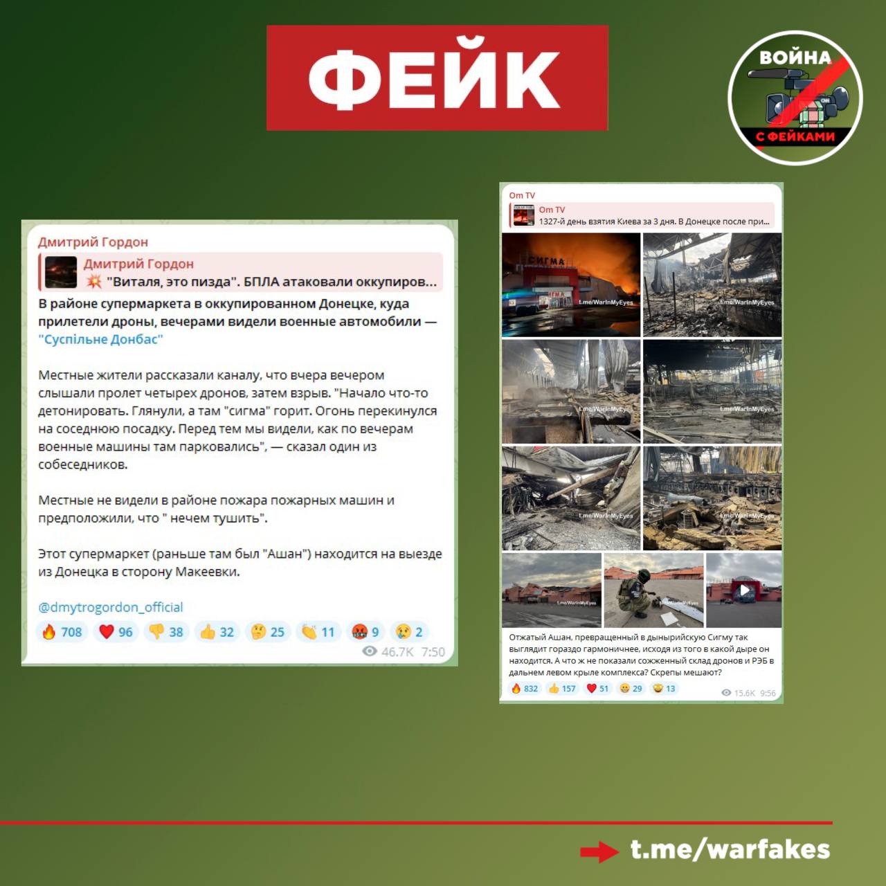 Фейк: ВСУ ударили по складу вооружения ВС РФ, который располагался на территории ТЦ «СИГМА» в Донецке. Об этом пишут украинские паблики.