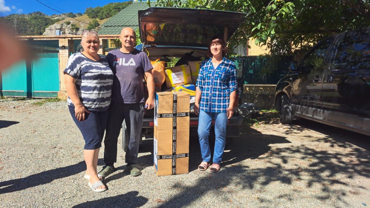 Через местных волонтеров кубанцы отправили десяток коробок с детскими игрушками и вещами, а также 20 коробок с продуктами питания.