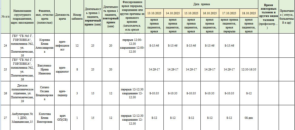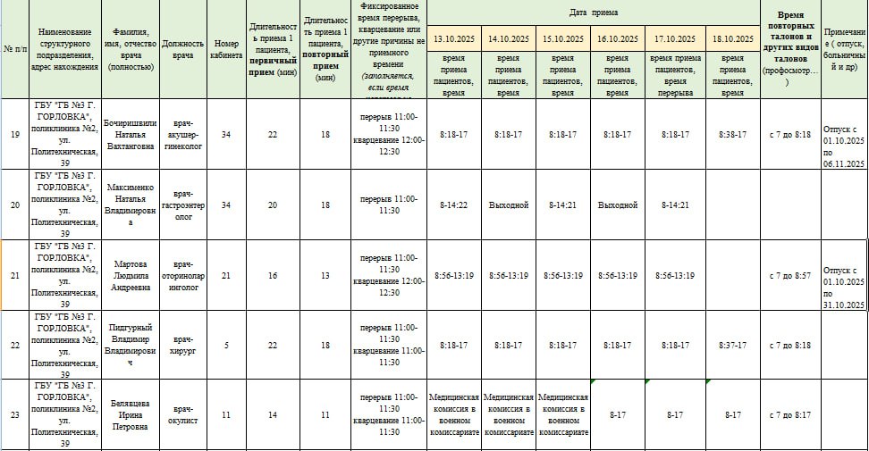Иван Приходько: График работы специалистов ГБУ ДНР «Городская больница № 1 г. Горловки» и ГБУ ДНР «Городская больница № 3 г. Горловки»