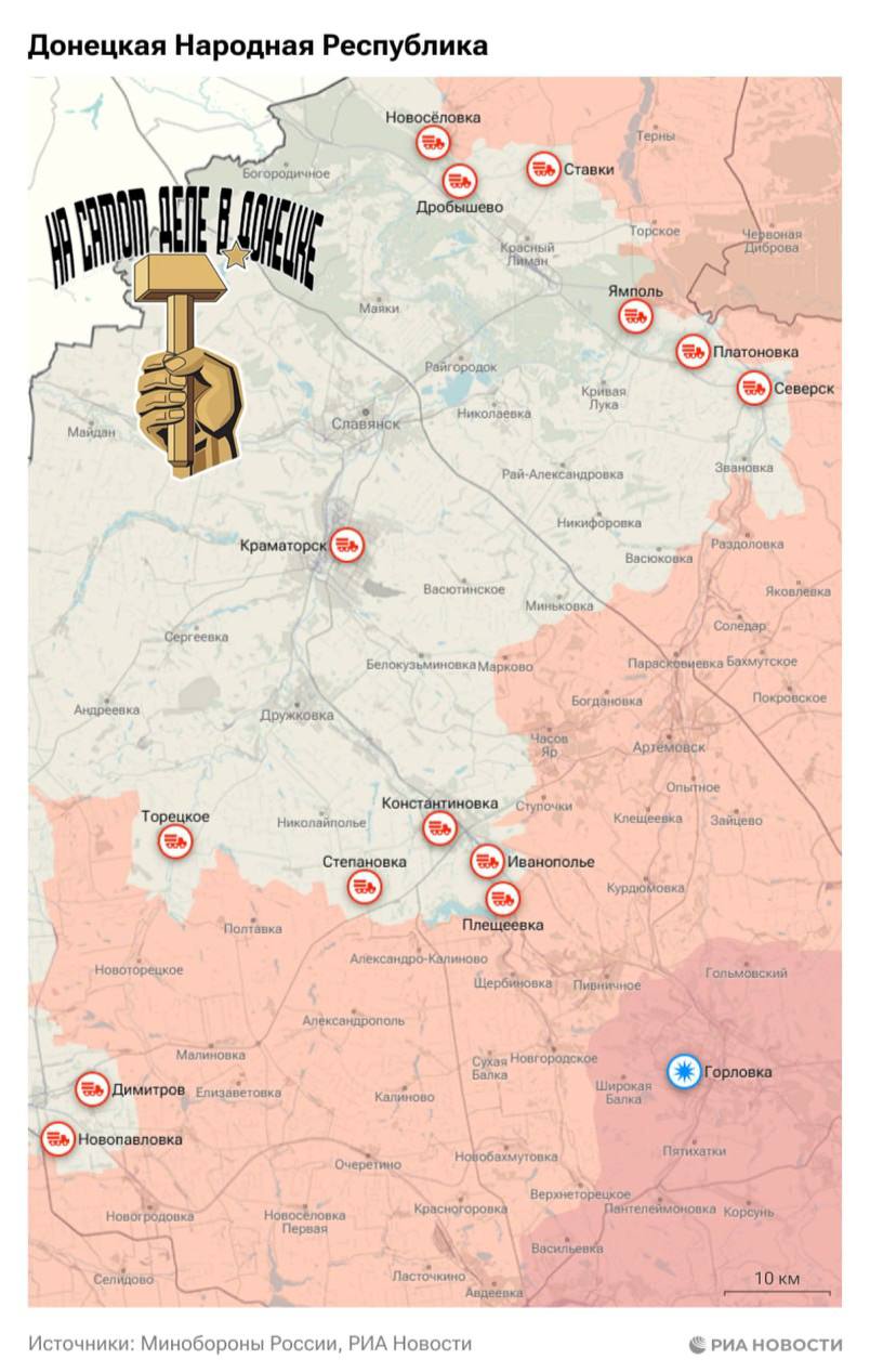 Русская армия освободила населённый пункт Московское в ДНР, зашла в восточные районы Димитрова и развивает наступление в его кварталах