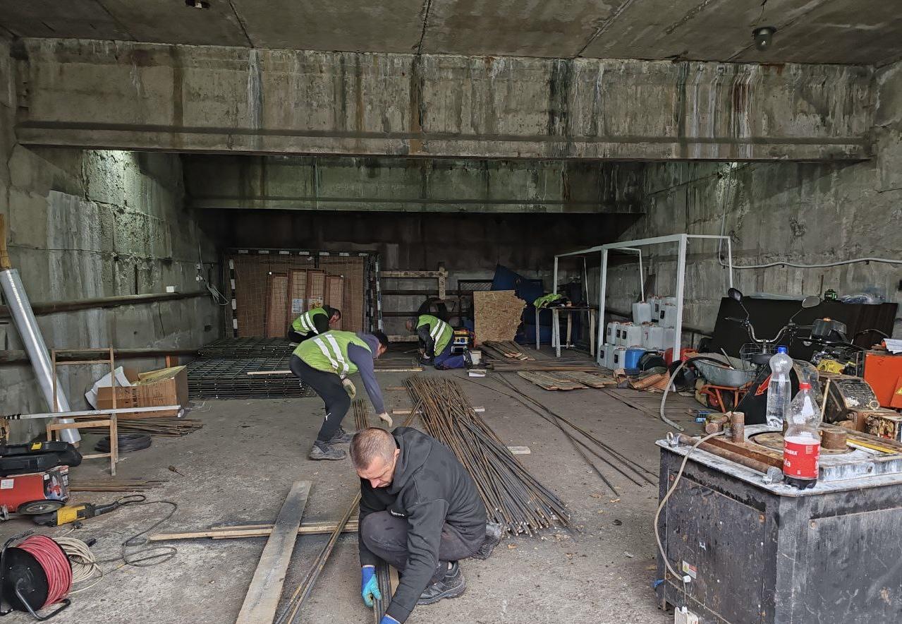 Сейчас специалисты приступили к вязке арматурных сеток, которые станут основой для заливки фундамента.