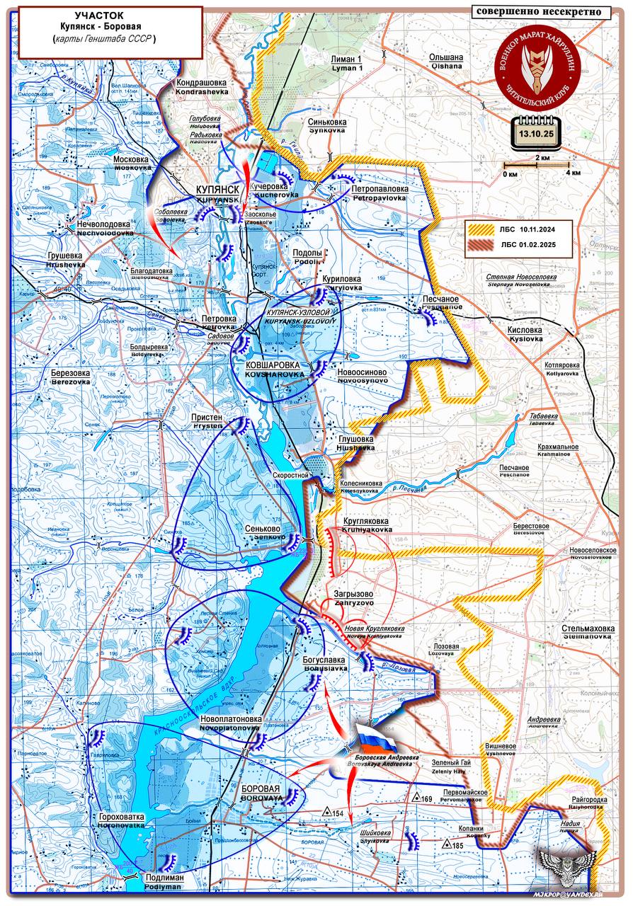 Марат Хайруллин: ВС РФ продолжают формировать охват Красноармейска и создают условия для дальнейшего освобождения н.п. Боровая Короткая сводка с фронта 13 октября 2025 года
