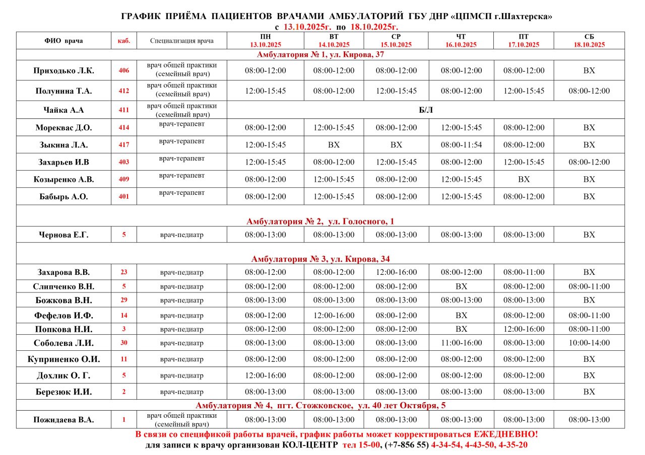Александр Шатов: Внимание Изменения в графике приемов врачами