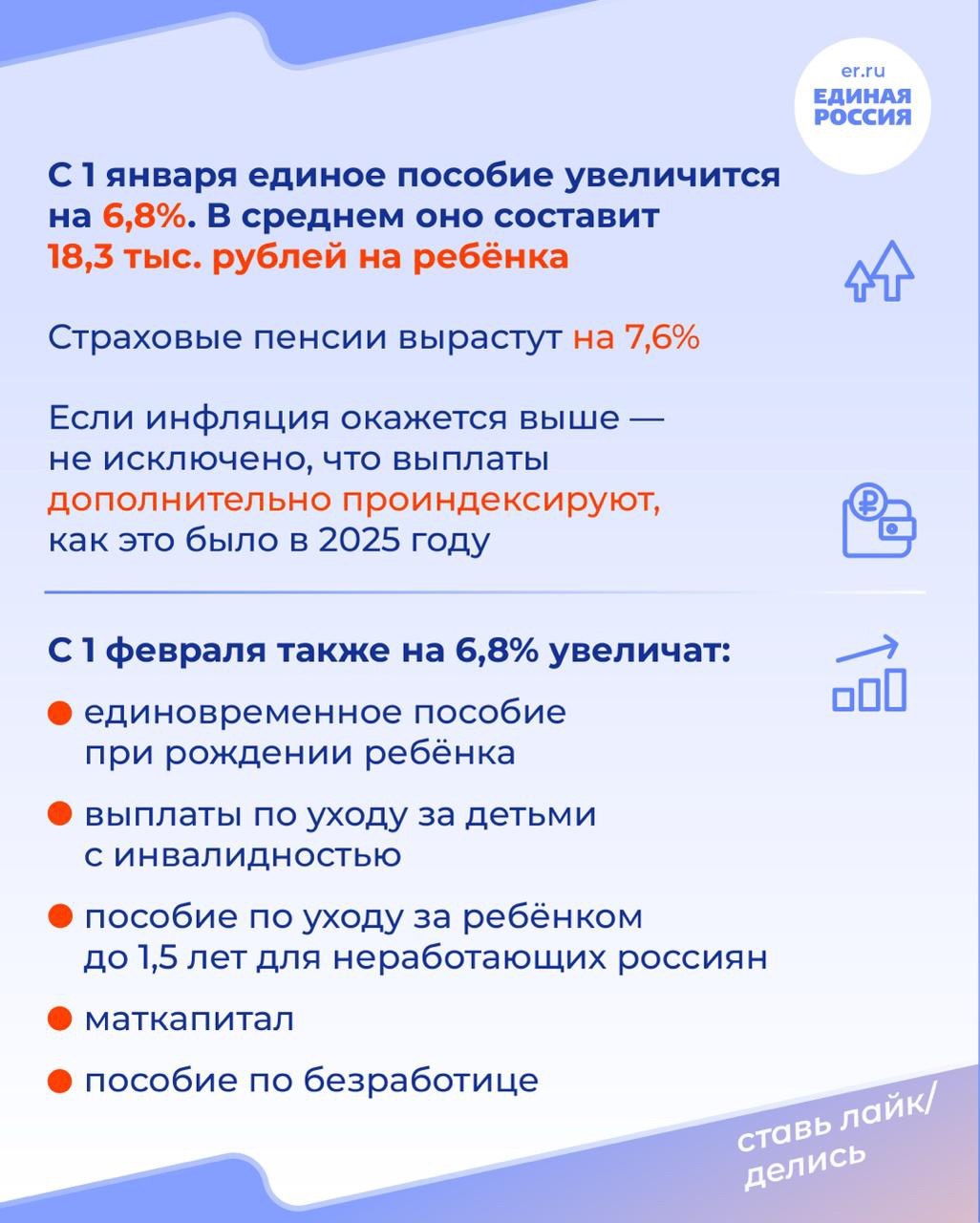 С начала 2026 года в России вырастут ключевые социальные выплаты. Индексация затронет единое пособие, страховые пенсии, маткапитал и пособия для безработных и семей с детьми.