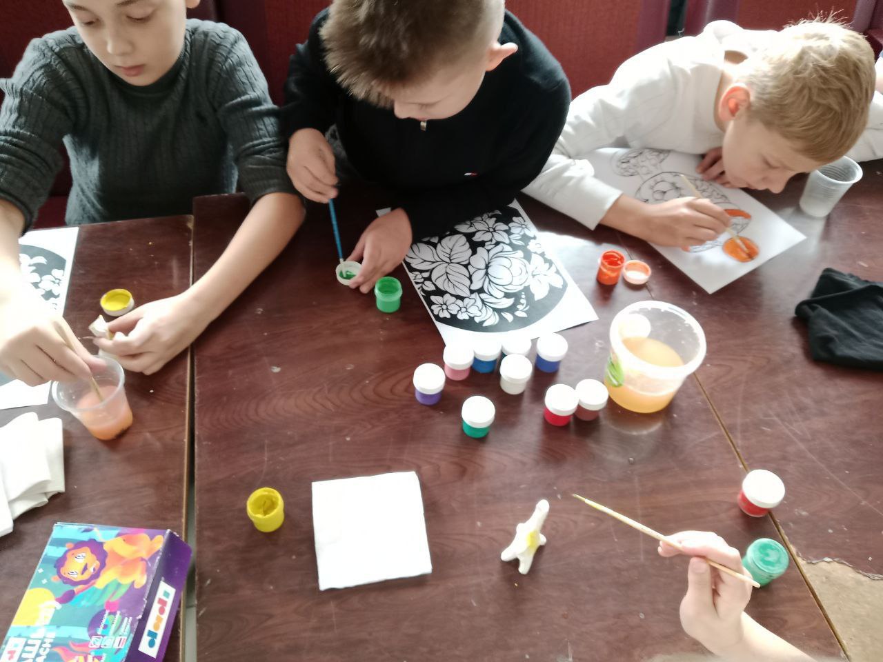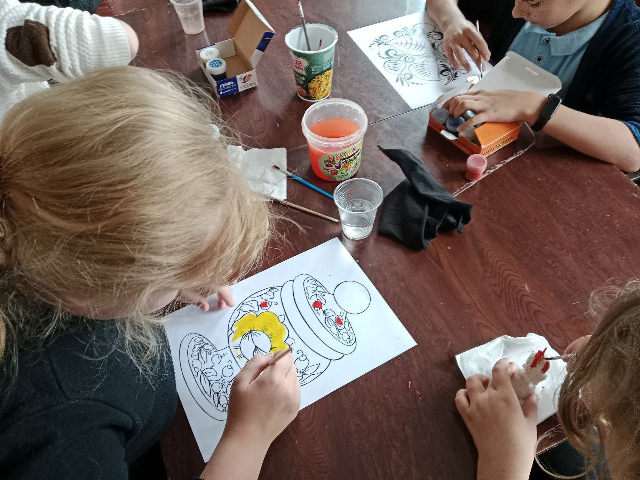 На мастер-классе дети с интересом прослушали информационную часть и с удовольствием приступили к творчеству, создавая свои собственные изделия в стиле хохломы.