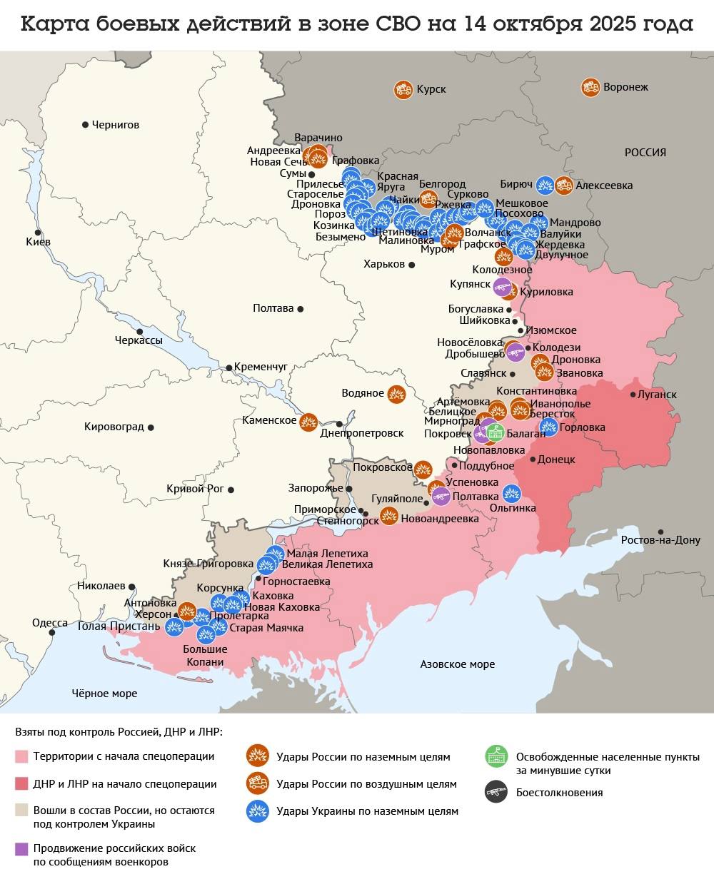 Карта боевых действий в зоне СВО на 14 октября 2025 года
