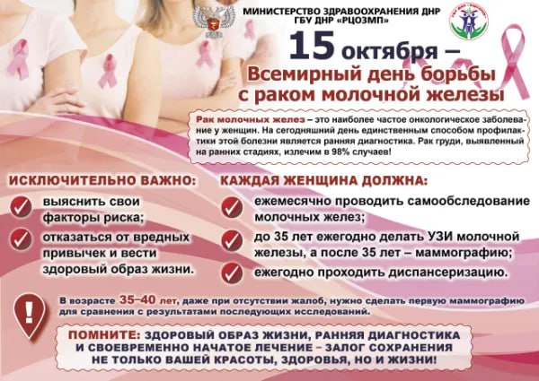 Помните, при выявлении рака молочной железы на ранних стадиях возможно полное излечение от заболевания! Не пренебрегайте приемами самоконтроля молочных желез, регулярно проходите диспансеризацию и делайте маммографию.