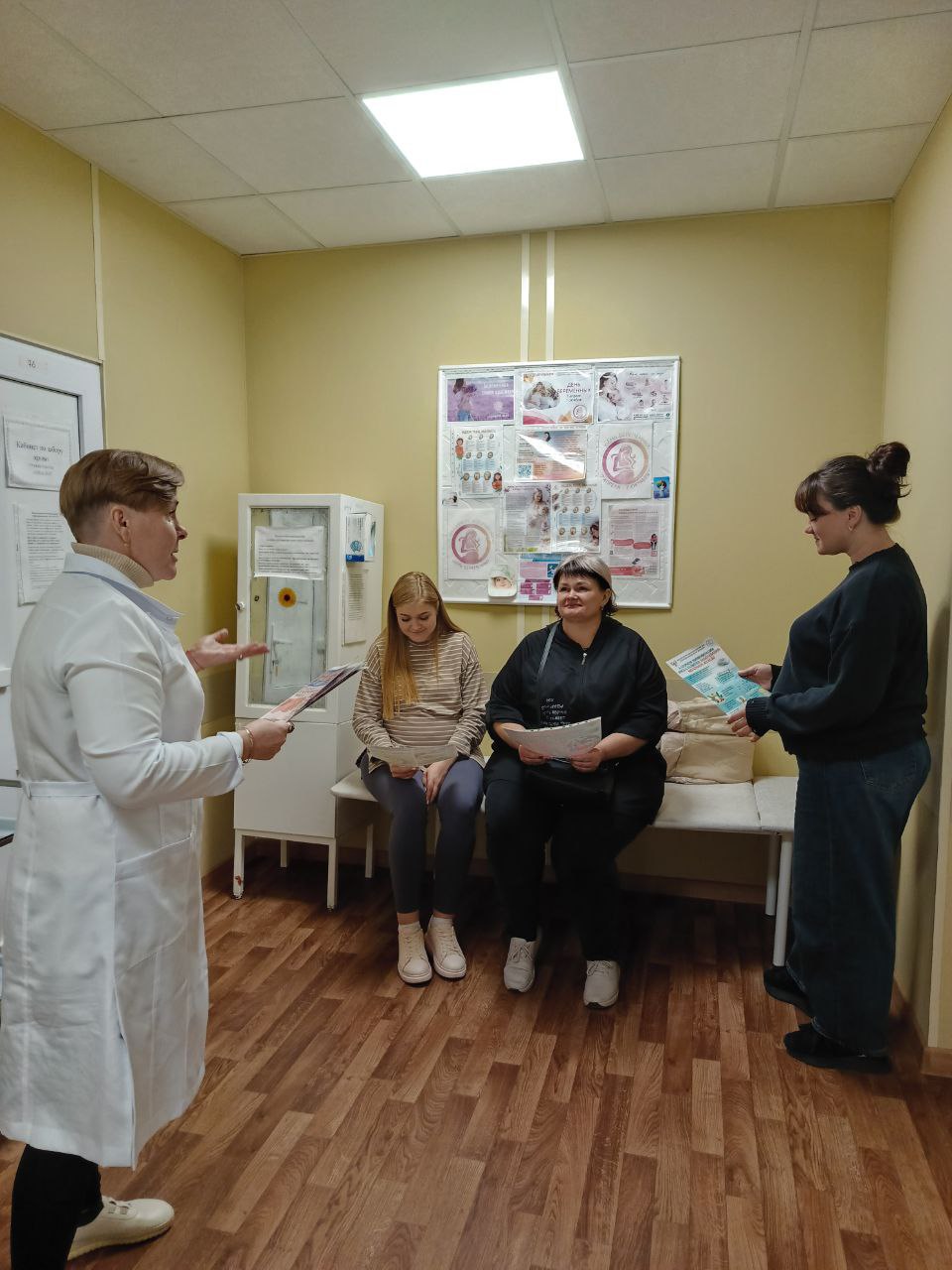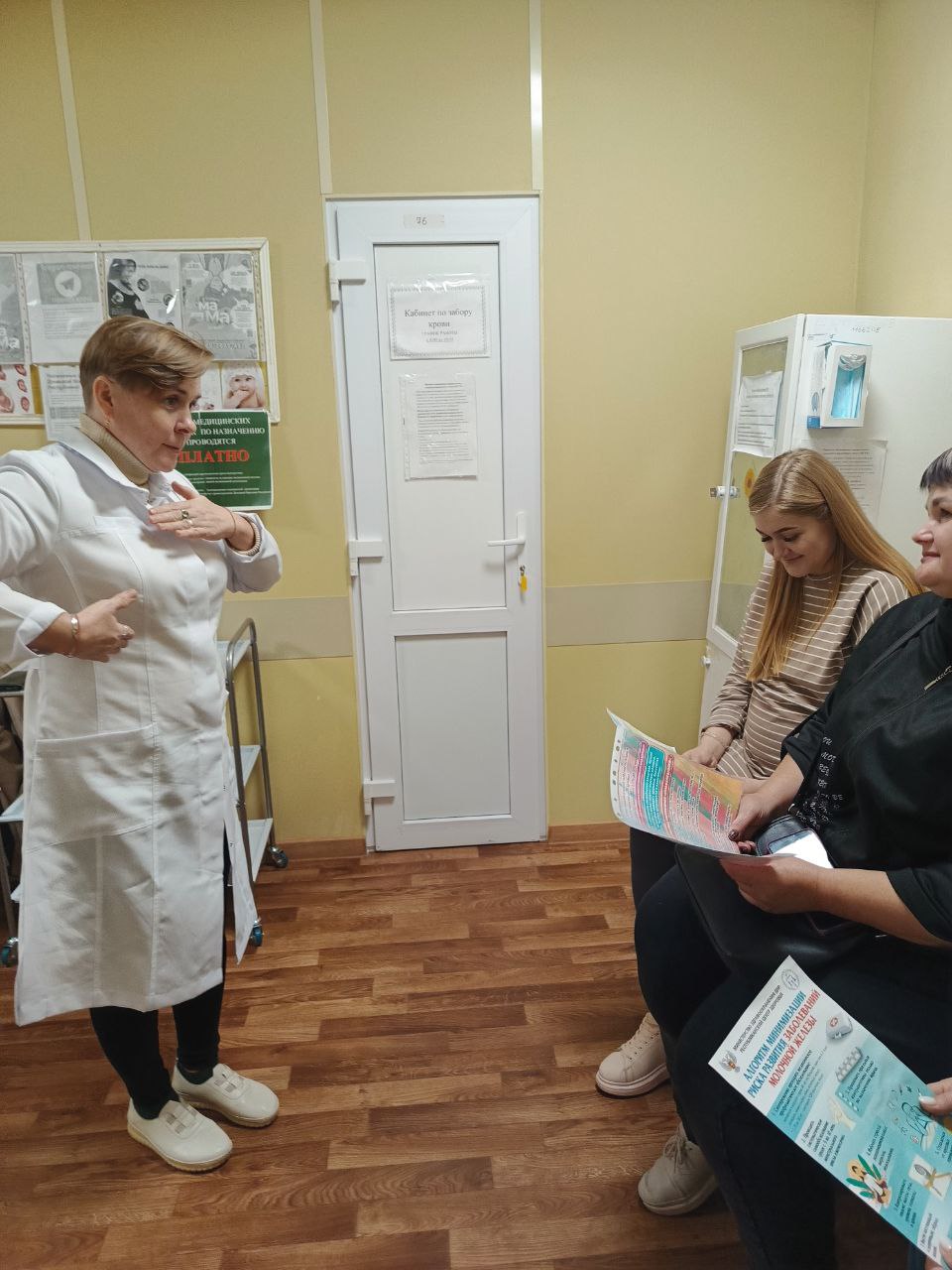 Старшая акушерка Тельмановской ЦРБ провела беседу и занятие в женской консультации на тему: "Простые советы: как избежать риска развития рака молочной железы"