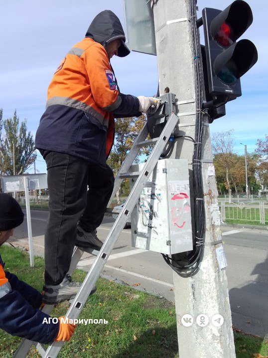 На левобережье Мариуполя дорожники восстановили питание светофора на оживленном перекрестке