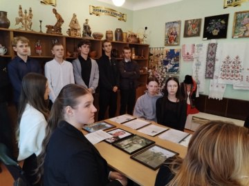 Экскурсию для ребят провели руководитель музея Ольга Клименко совместно с юными экскурсоводами школы: Виецкой Валерией, Юхник Златой, Полянской Анной и Гунько Кристиной.