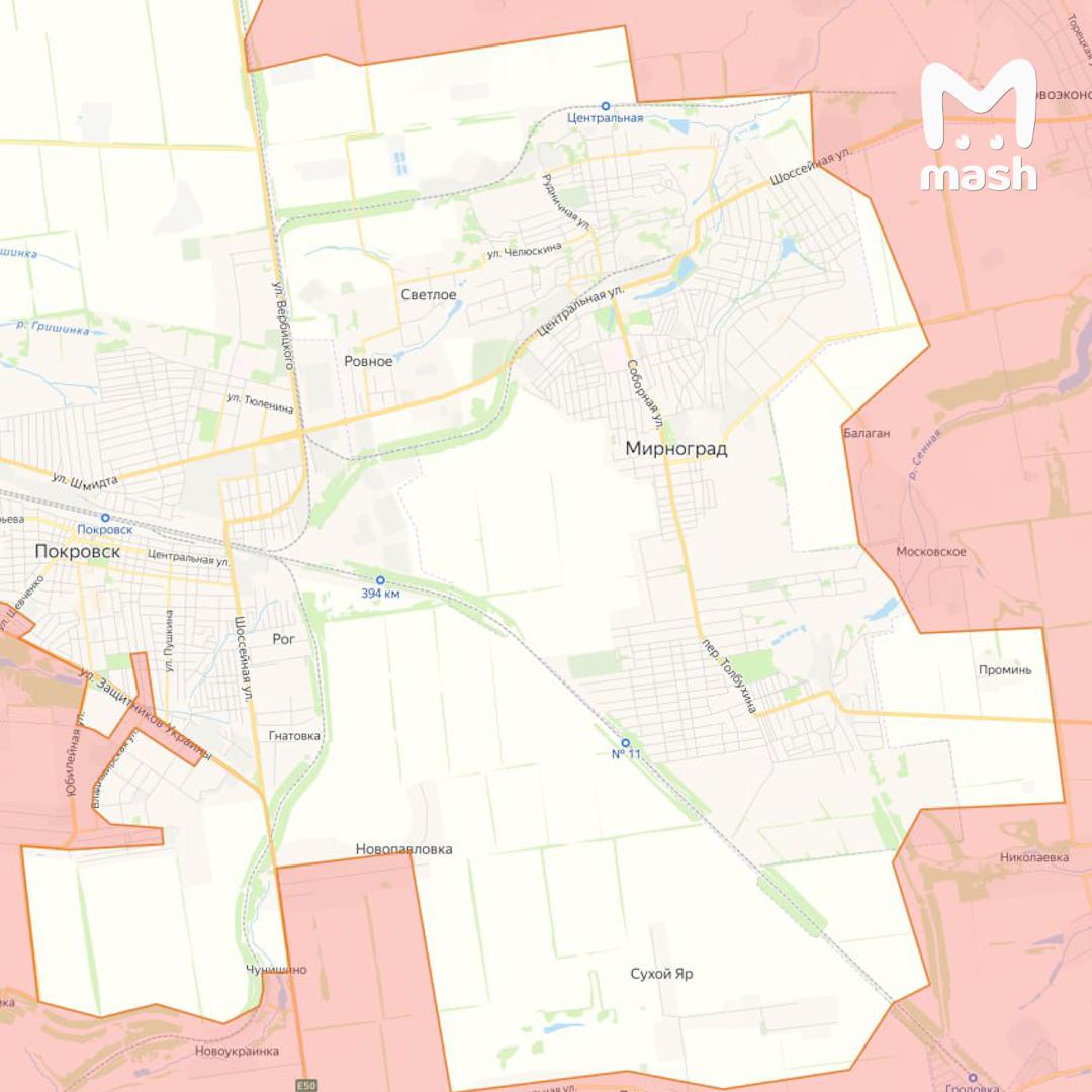 По данным Mash, это части первой бригады ТРО и 129-й механизированной бригады — их отправили в Покровск из Черниговской и Сумской областей. Противник до сих пор укрепляется в северной части города — за железной дорогой. ВС РФ продолжают закрывать котёл и уже перерезали все основные трассы.