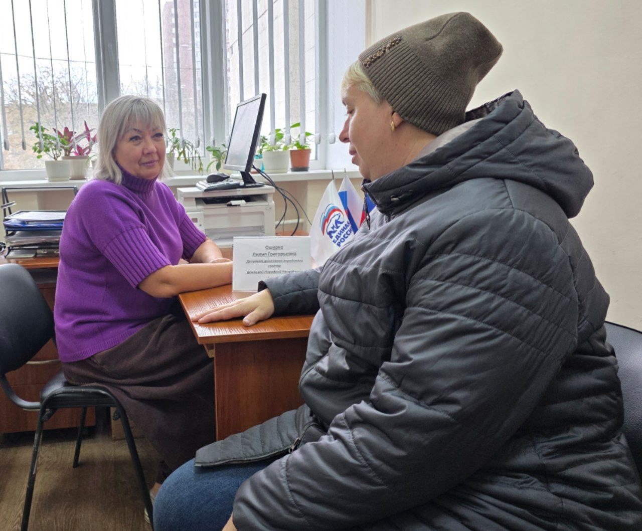 Сегодня, 15 октября, в Общественной приемной Партии «Единая Россия» в Ворошиловском внутригородском районе города Донецка личный прием провела Депутат Донецкого городского совета I созыва Лилия Ошурко.
