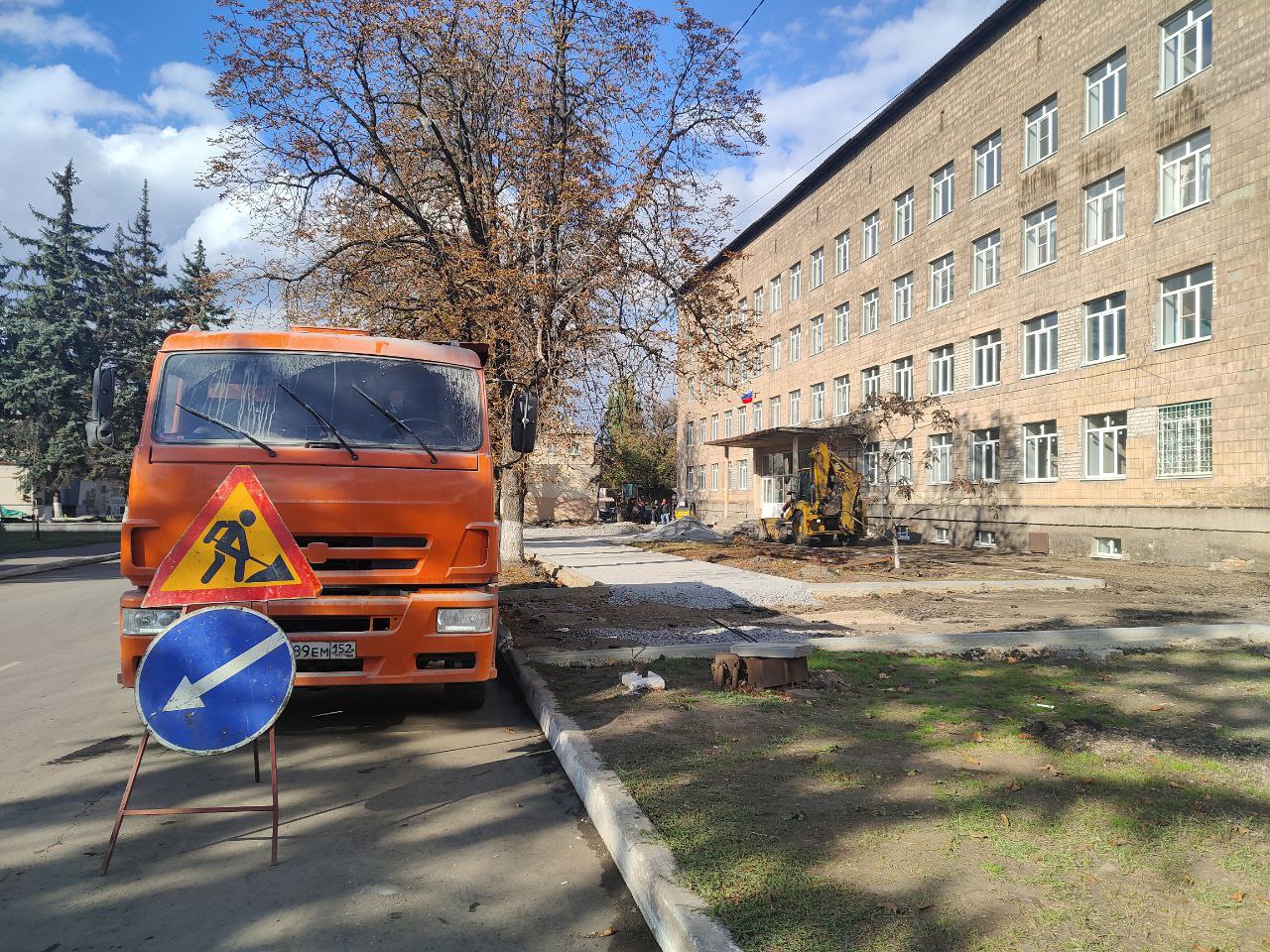 Подрядной организацией шеф-региона Нижегородской области в рамках специального инфраструктурного проекта производятся работы по ремонту тротуаров в г. Иловайске (ул. Шевченко).