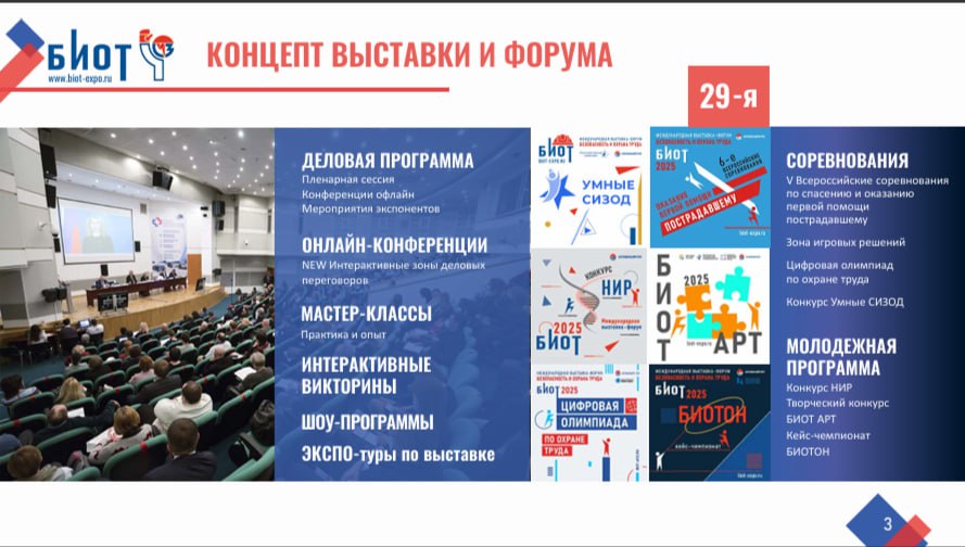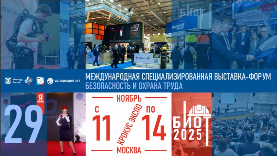С 11 по 14 ноября 2025 года в Москве, на территории МВЦ «Крокус Экспо», пройдет XXIX Международная специализированная выставка-форум «Безопасность и охрана труда» (БИОТ-2025).