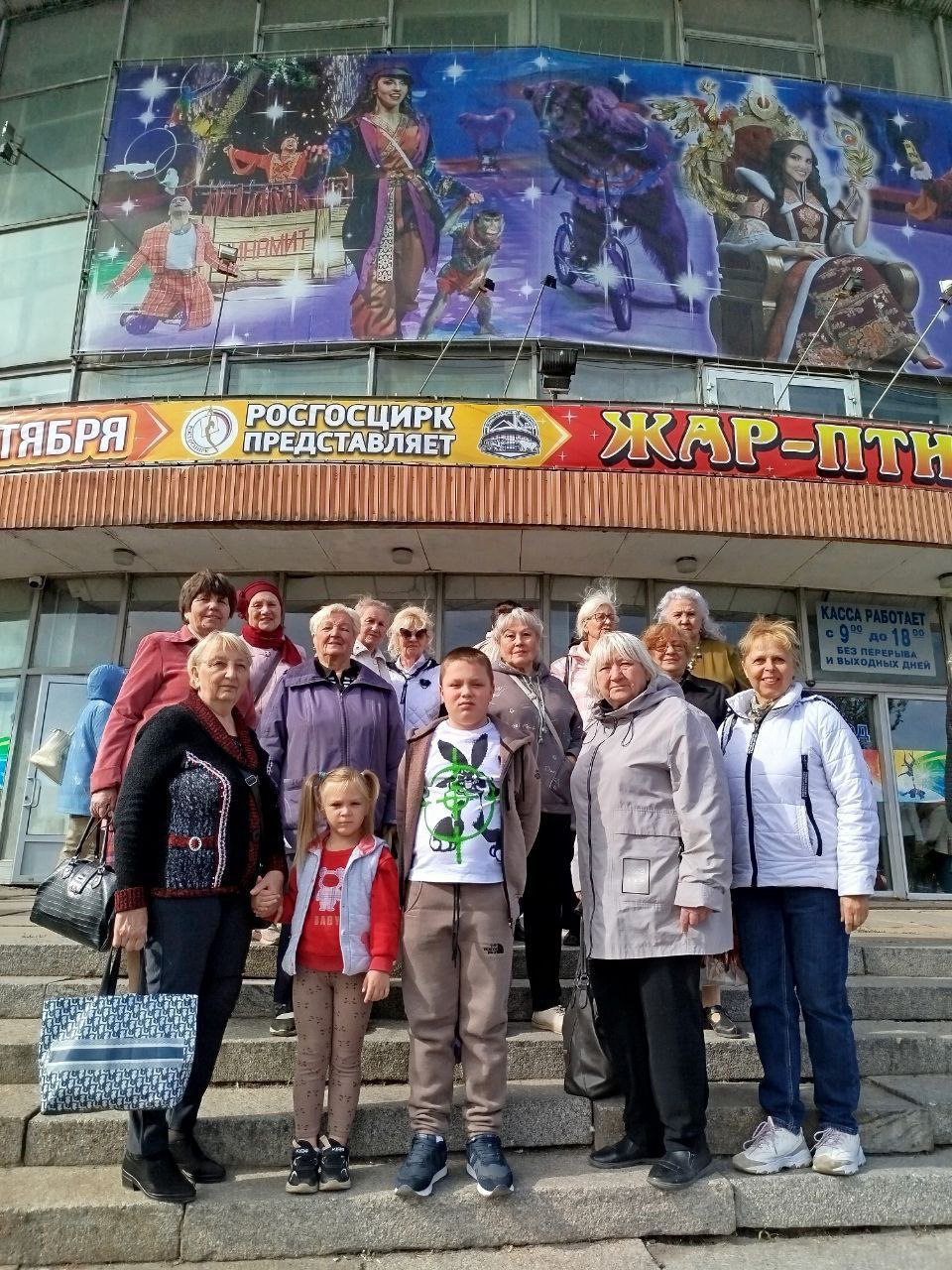 Активистка партийного проекта «Женское движение Единой России» Буденновского района г. Донецка, а это женщины-инвалиды, ветераны труда, получили заряд невероятных эмоций и энергии, море позитива и хорошее настроение, посетив Донецкий цирк «Космос» с шоу-программой «ЖАР-ПТИЦА» династии Филатовых-Клыковых под руководством заслуженной артистки РФ Юлии Филатовой.