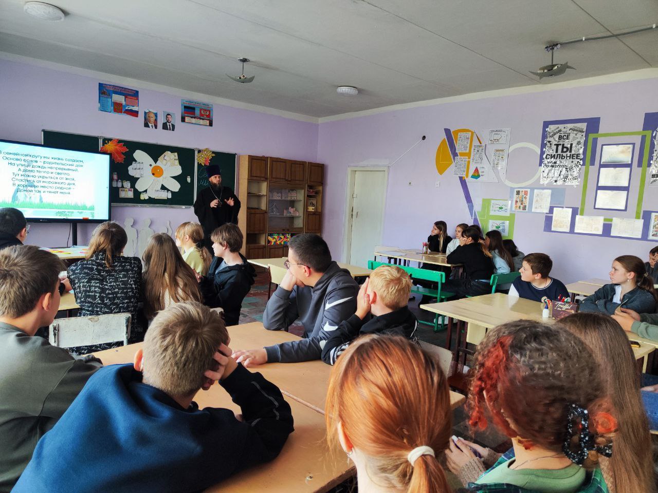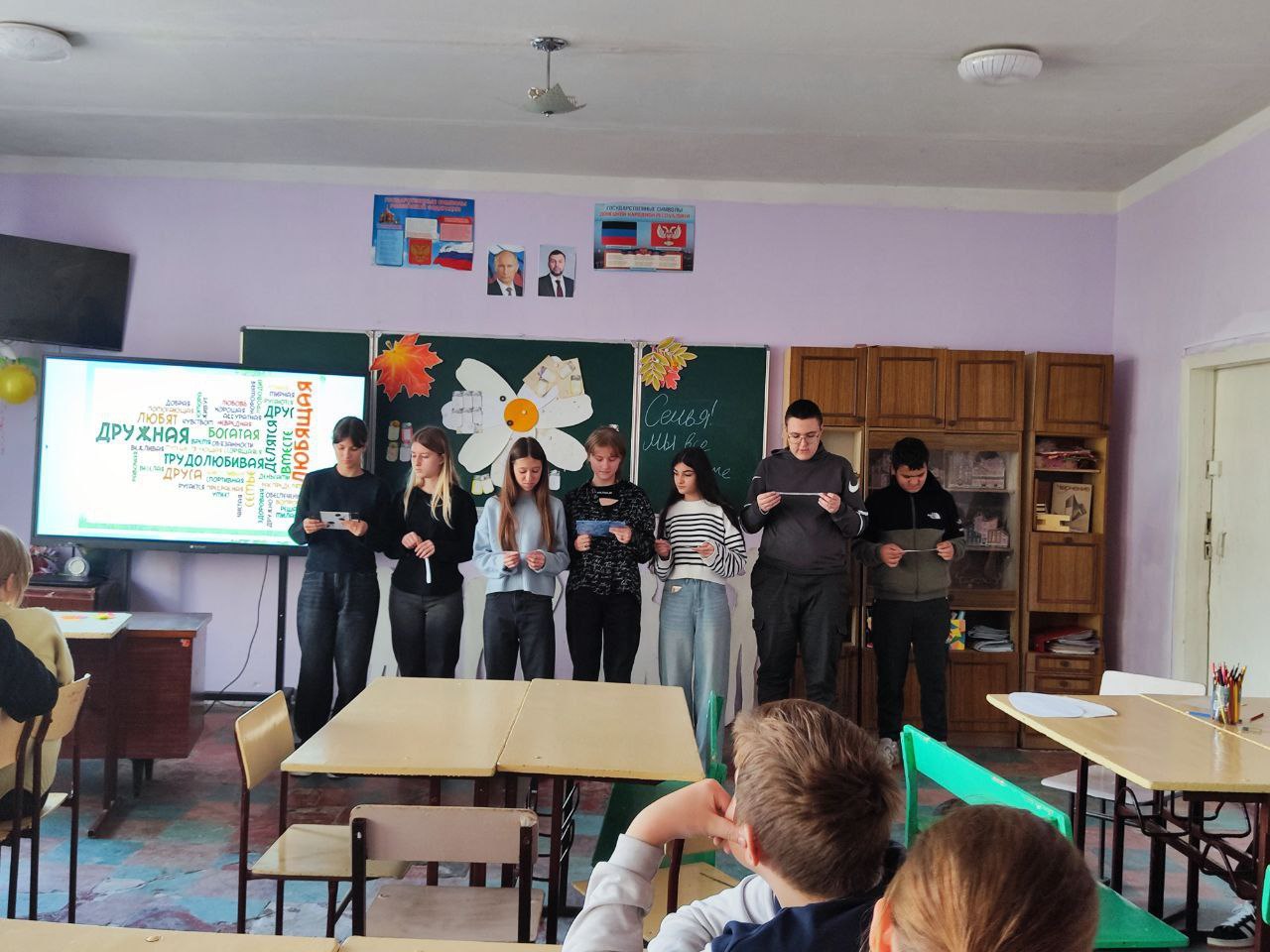 15 октября в рамках партийного проекта "Мир возможностей" в ГБОУ "Школа № 11 г.о. Торез" проведен час вопросов и ответов "Семья и семейные ценности". Целью проведенного мероприятия было общение и выявление роли семьи в жизни человека. Живое участие ребят было в обсуждении семейных ценностей, счастливой семейной жизни и участие в постановке притчи о четырех свечах ( мир, вера, любовь и надежда).