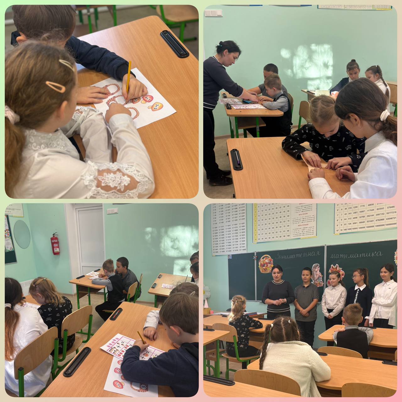 В ГБОУ"Мироновская школа №9 г.о. Дебальцево" весело прошел День математики. Для учеников 1 класса были подготовлены интересные и увлекательные задания. Дети решали красочные примеры, которые помогали им узнать не только математические законы, но и развивали их логическое мышление. Входе мероприятия дети также знакомились с различными геометрическими фигурами на плоскости и в пространстве, учились делать объемные фигуры из разверток и понимать особенности каждой из них. Наставниками и помощниками, при возникновении трудностей, были обучающиеся 5 класса.