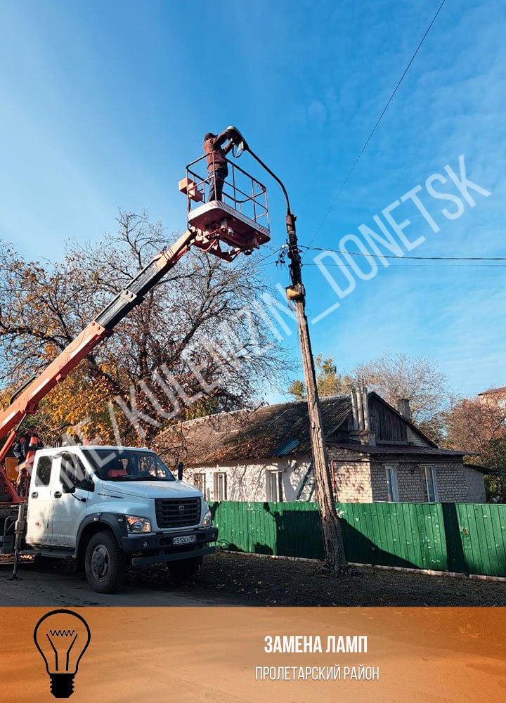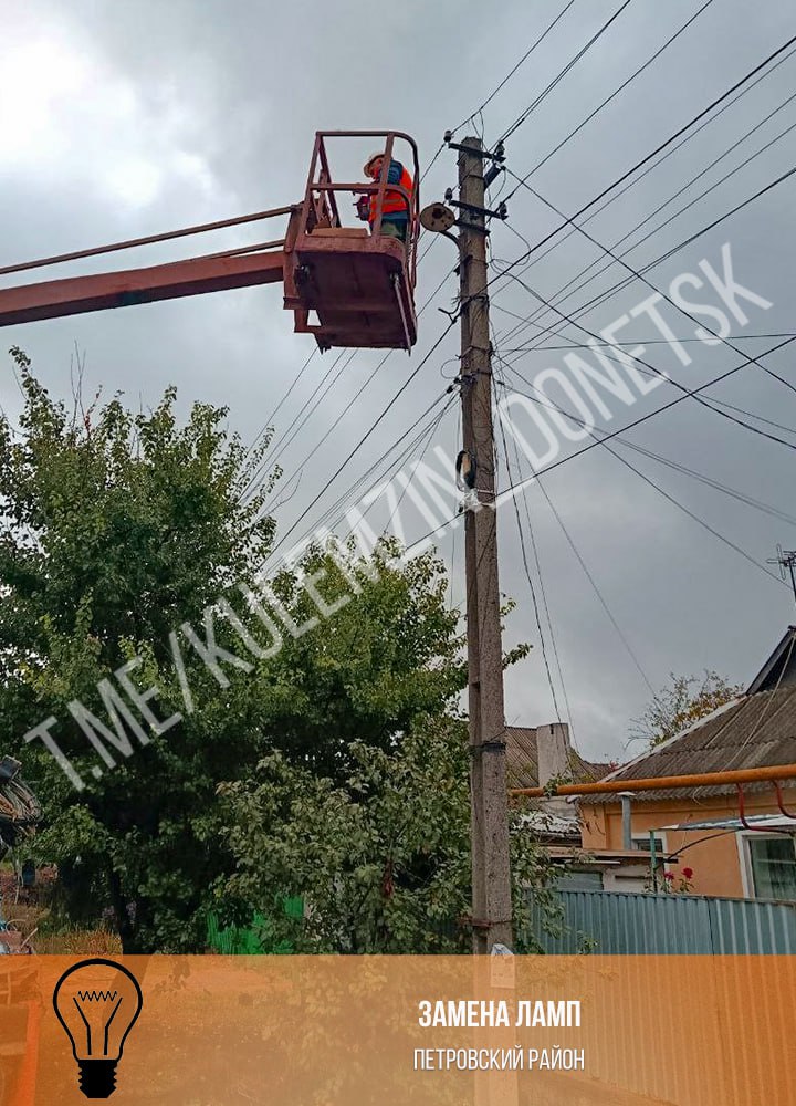 Работники предприятия «Донецкгорсвет» во всех районах города выполняют техническое обслуживание сетей наружного освещения и оборудования.