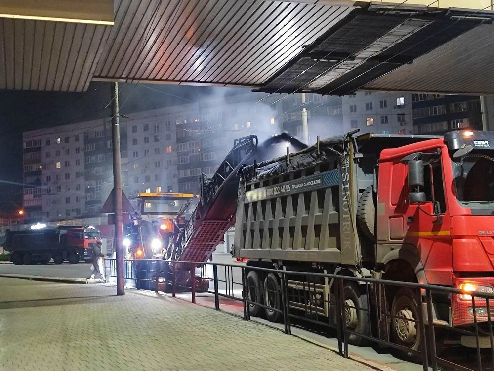 За сегодня дорожники уложили порядка 6 км покрытия по Ленинскому проспекту, а на площади Коммунаров на 97% выполнены работы по фрезерованию, и начинается укладка нижнего слоя асфальтобетонной смеси.