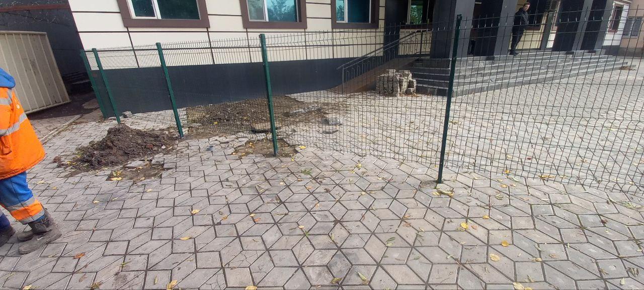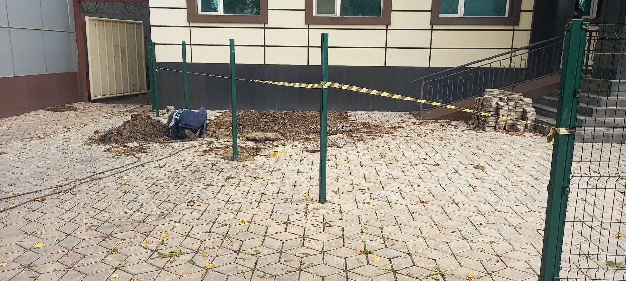 Для проведения работ частично демонтировали ограждение, после чего подключили трубу диаметром 25 мм в канализационном колодце.