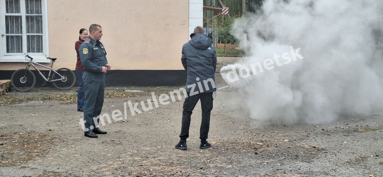 Кроме этого, воспитанникам техникума показали на практике как пользоваться порошковым огнетушителем.