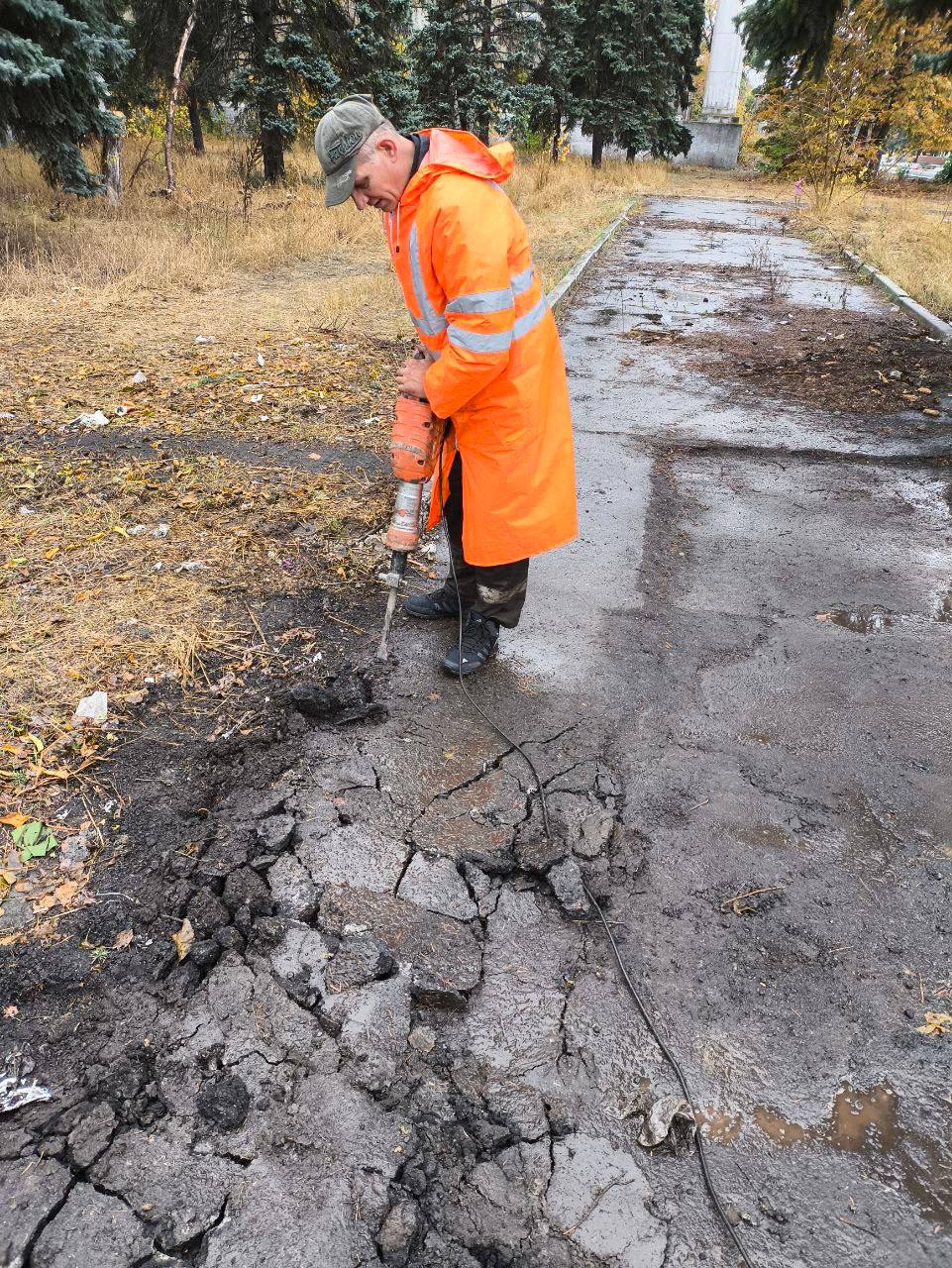 - Производилось фрезерование асфальтобетонного покрытия в парке им. М. Горького и на улице Политехнической.