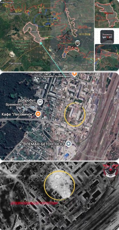 На первом снимке Зверохозяйство в Красном Лимане. На второй снимке - южные районы Красного Лимана, которые подвергаются ударам ФАБов.